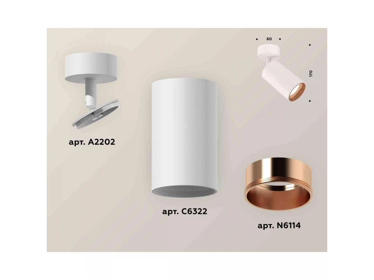 Комплект накладного светильника Ambrella light Techno Spot XM6322005 SWH/PPG белый песок/золото розовое полированное (A2202, C6322, N6114)
