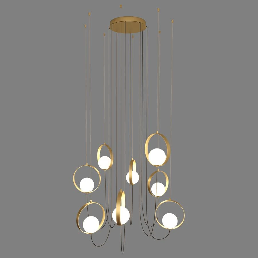 Данная модель входит в состав коллекции Halo и исполнена в стиле модерн. Люстра имеет высоту 2000 мм и диаметр 1500 мм. Работает при напряжении 220-240 V.