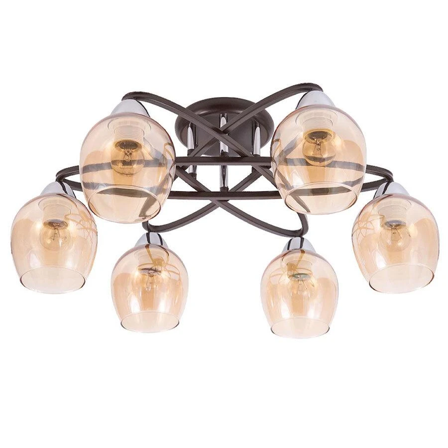 Данная модель входит в состав коллекции Элвин и исполнена в стиле венге. Люстра имеет высоту 250 мм и диаметр 620 мм. Работает при напряжении 230 V.