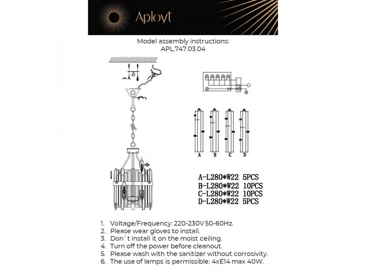 Интересная модель APL.747.03.04 от польской компании Aployt относится к коллекции Melisa и отлично подойдет для установки на потолок спальни, оформленной в стиле модерн. Подвесная люстра Aployt Melisa APL.747.03.04 с цилиндрическими плафонами осветит помещение площадью 8 кв. м. Производитель Aployt рекомендует использовать для устройства лампы накаливания с цоколем E14 и мощностью 40 W. Прибор произведен с использованием материалов: хрусталь и металл и может использоваться для натяжного потолка. Подвесная люстра APL.747.03.04 продается по цене 27380 руб. Торопитесь сделать заказ в интернет-магазине ВоронежСвет.