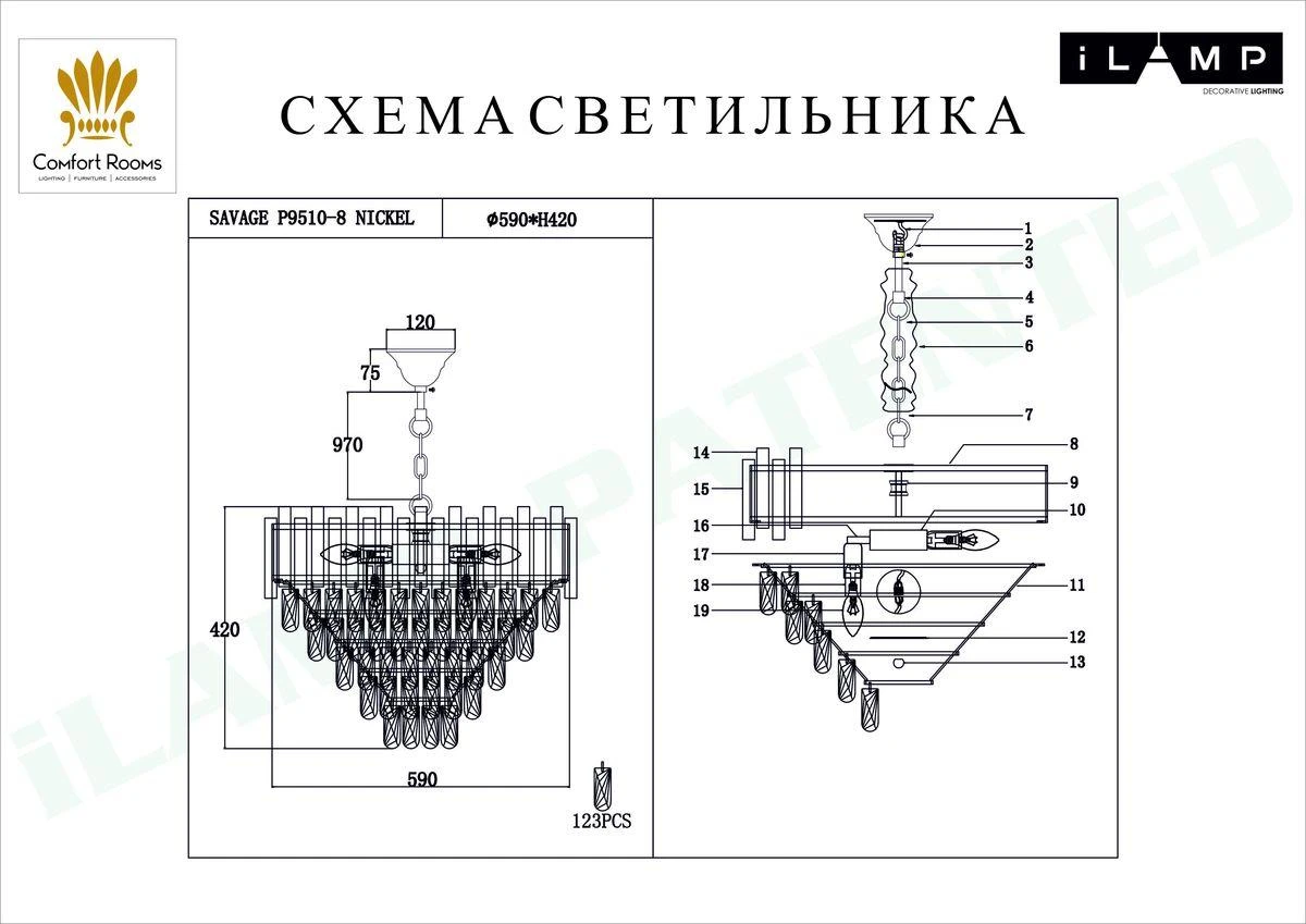 Подвесная люстра iLamp Savage P9510-8 NIC