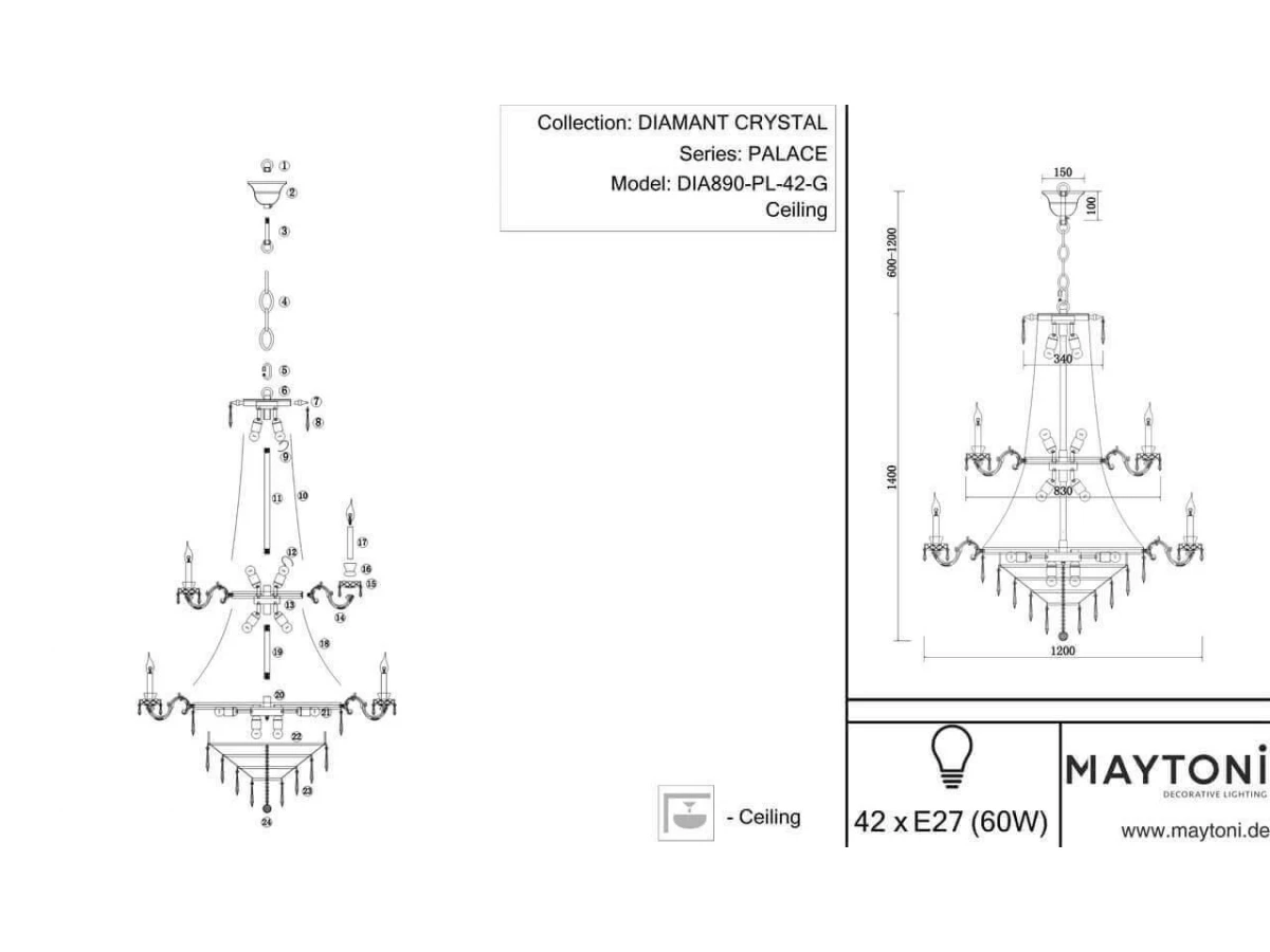 Подвесная люстра Maytoni Palace DIA890-PL-42-G