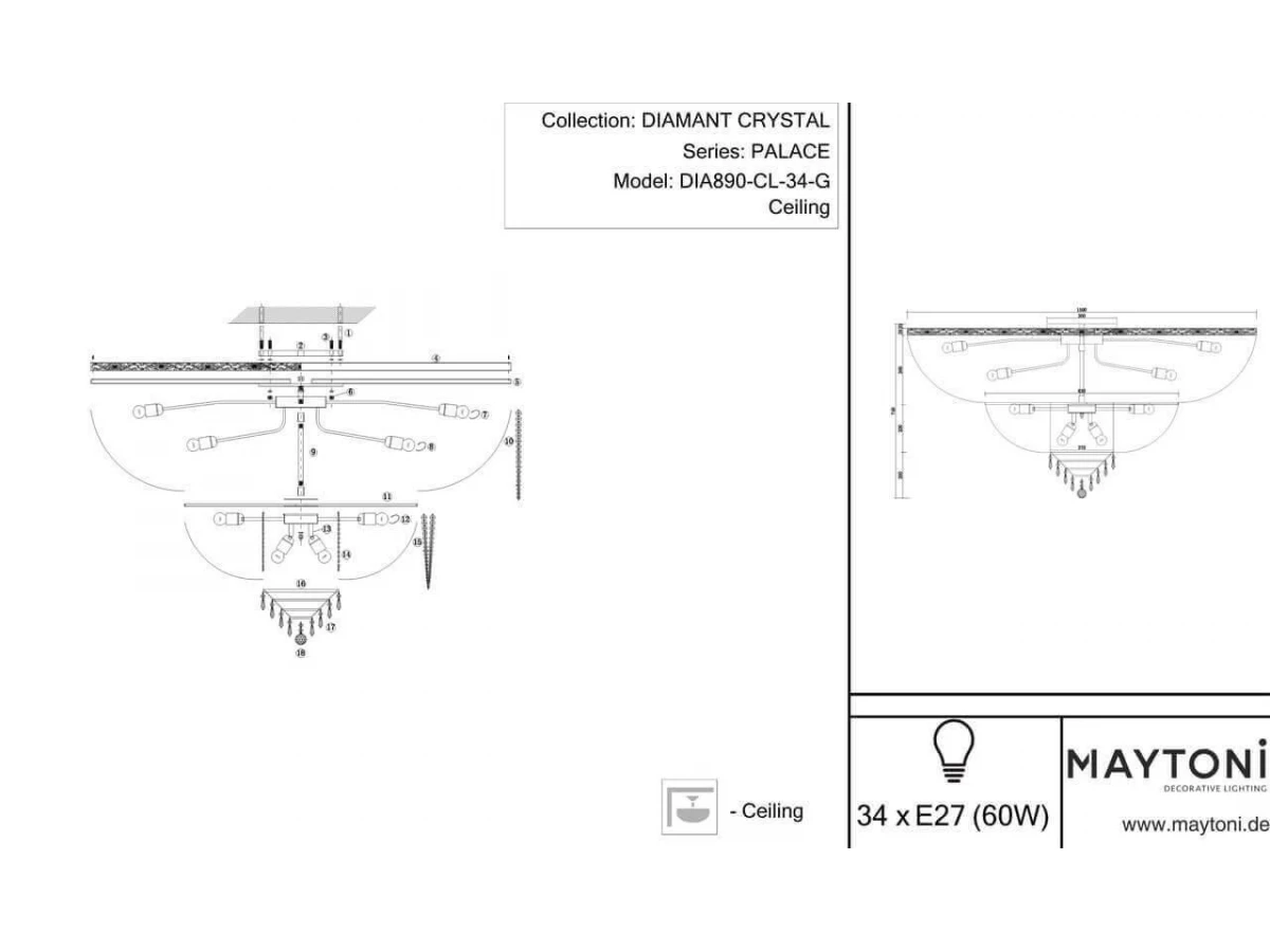 Потолочная люстра Maytoni Palace DIA890-CL-34-G