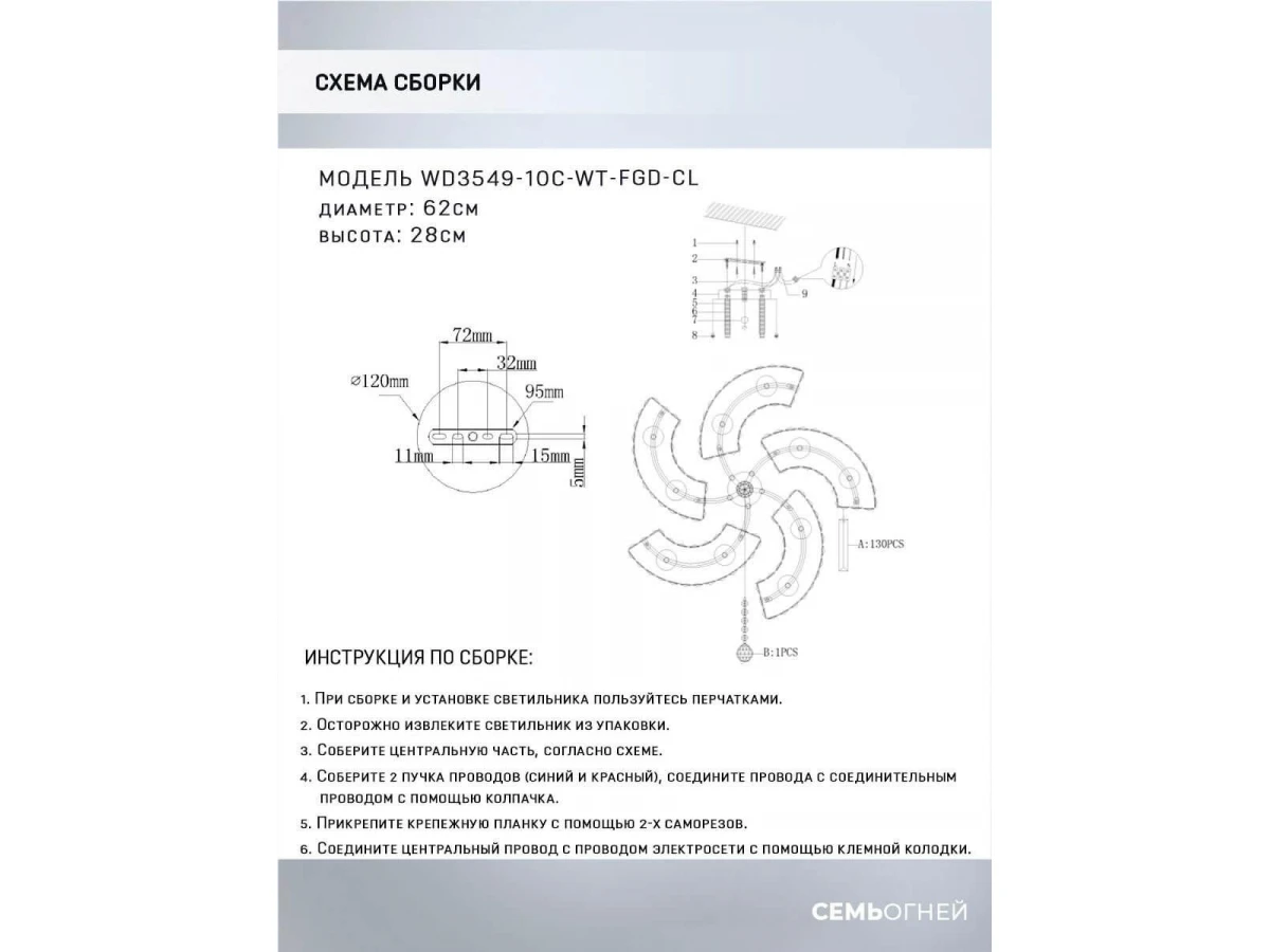 Интересная модель WD3549/10C-WT-FGD-CL от российской компании Seven Fires относится к коллекции Iveya и отлично подойдет для установки на низкий потолок в гостиной, оформленной в стиле модерн. Потолочная люстра Seven Fires Iveya WD3549/10C-WT-FGD-CL с плафонами в форме цветов осветит помещение площадью 30 кв. м. Производитель Seven Fires рекомендует использовать для устройства лампы накаливания с цоколем E27 и мощностью 60 W. Прибор произведен с использованием материалов: хрусталь и металл и может использоваться для натяжного потолка. Основным цветом товара является белый. Торопитесь сделать заказ в интернет-магазине ВоронежСвет.