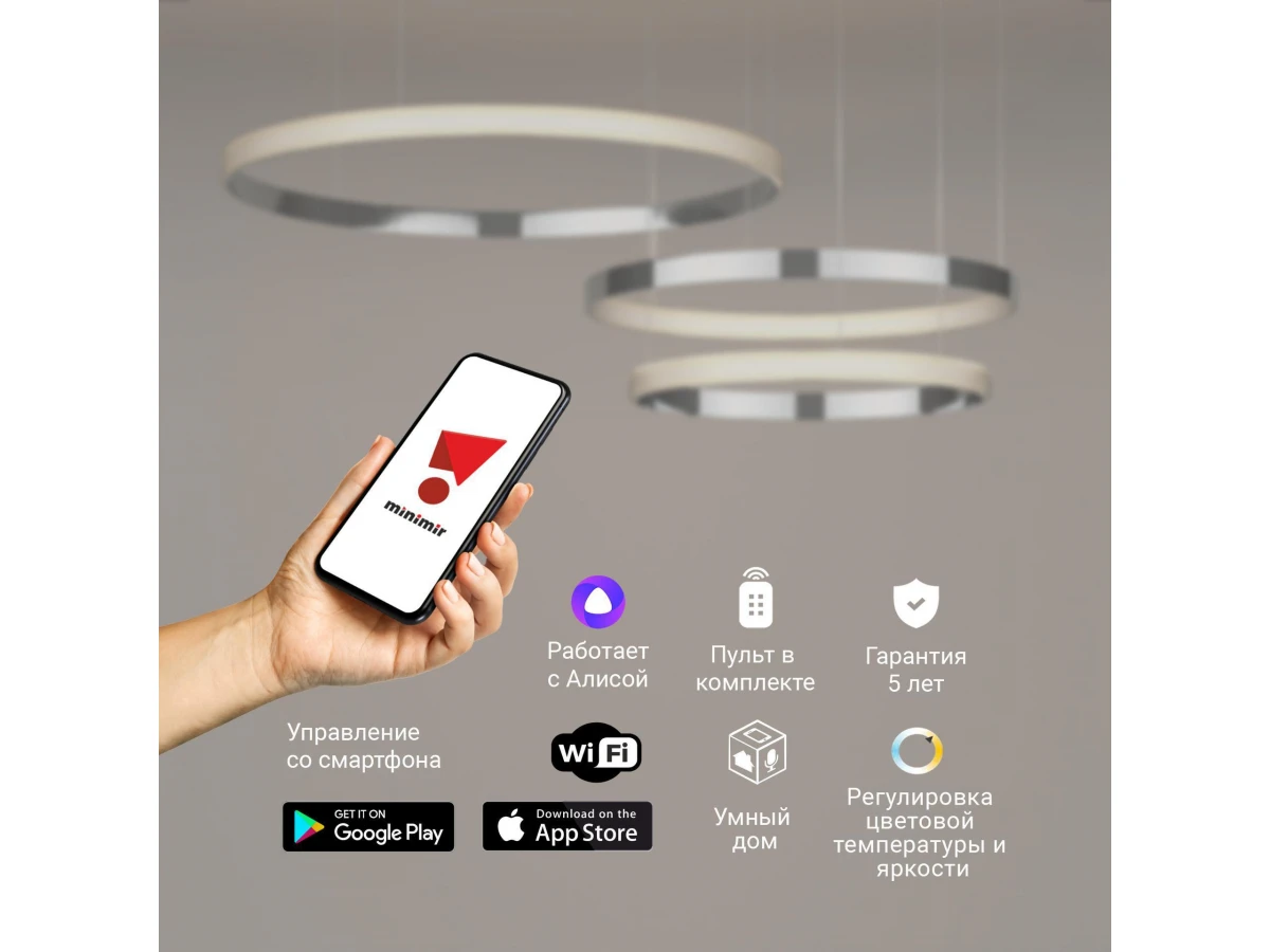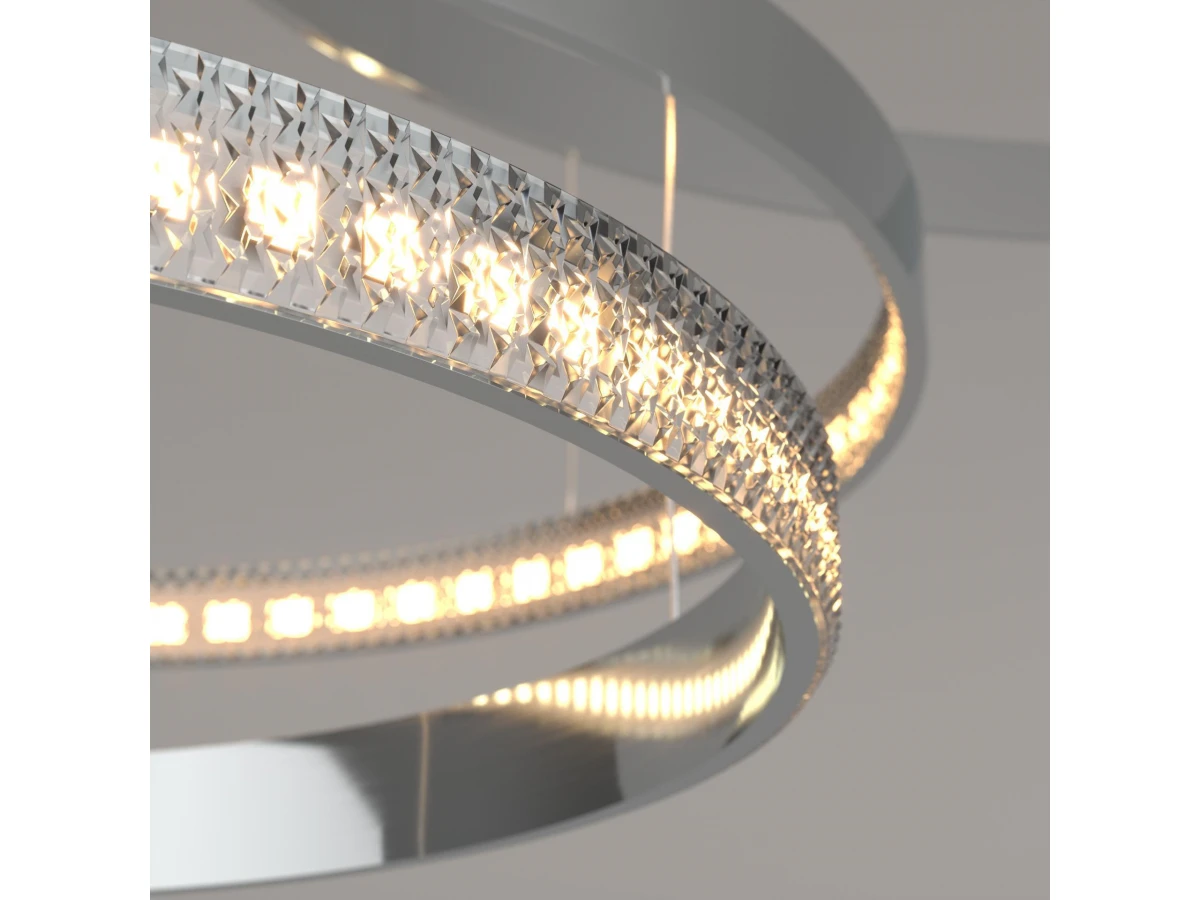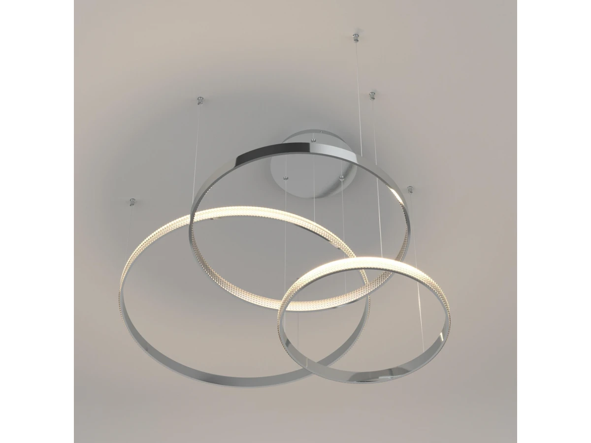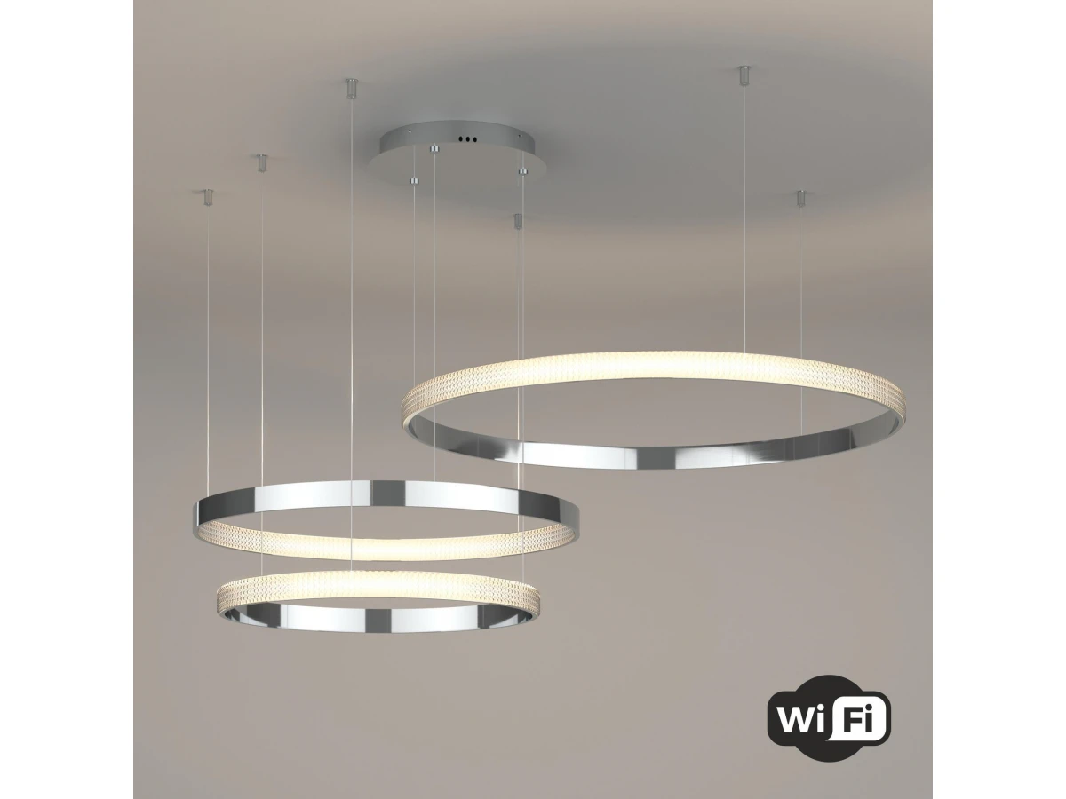 Светодиодная люстра с управлением по Wi-Fi 90275/3 хром поможет организовать качественное освещение на площади 28 м кв. и украсить современный интерьер. Высокотехнологичный светильник оснащен энергоэффективными SMD светодиодами мощностью 100 Вт, создающие световой поток 5000 лм. С помощью пульта управления и мобильного приложения Minimir Home можно регулировать яркость и цветовую температуру, доступную в трех значениях: 3300, 4200 и 6500К. В производстве подвесной LED люстры использовали высококачественный металл с надежным защитным покрытием. Подсвесная светодиодная люстра подходит для установки на любые поверхности, в том числе монтируется в натяжные и подвесные потолки. Наш интернет-магазин предлагает купить подвесной светодиодный светильник с управлением по Wi-Fi по низкой цене с доставкой по России.