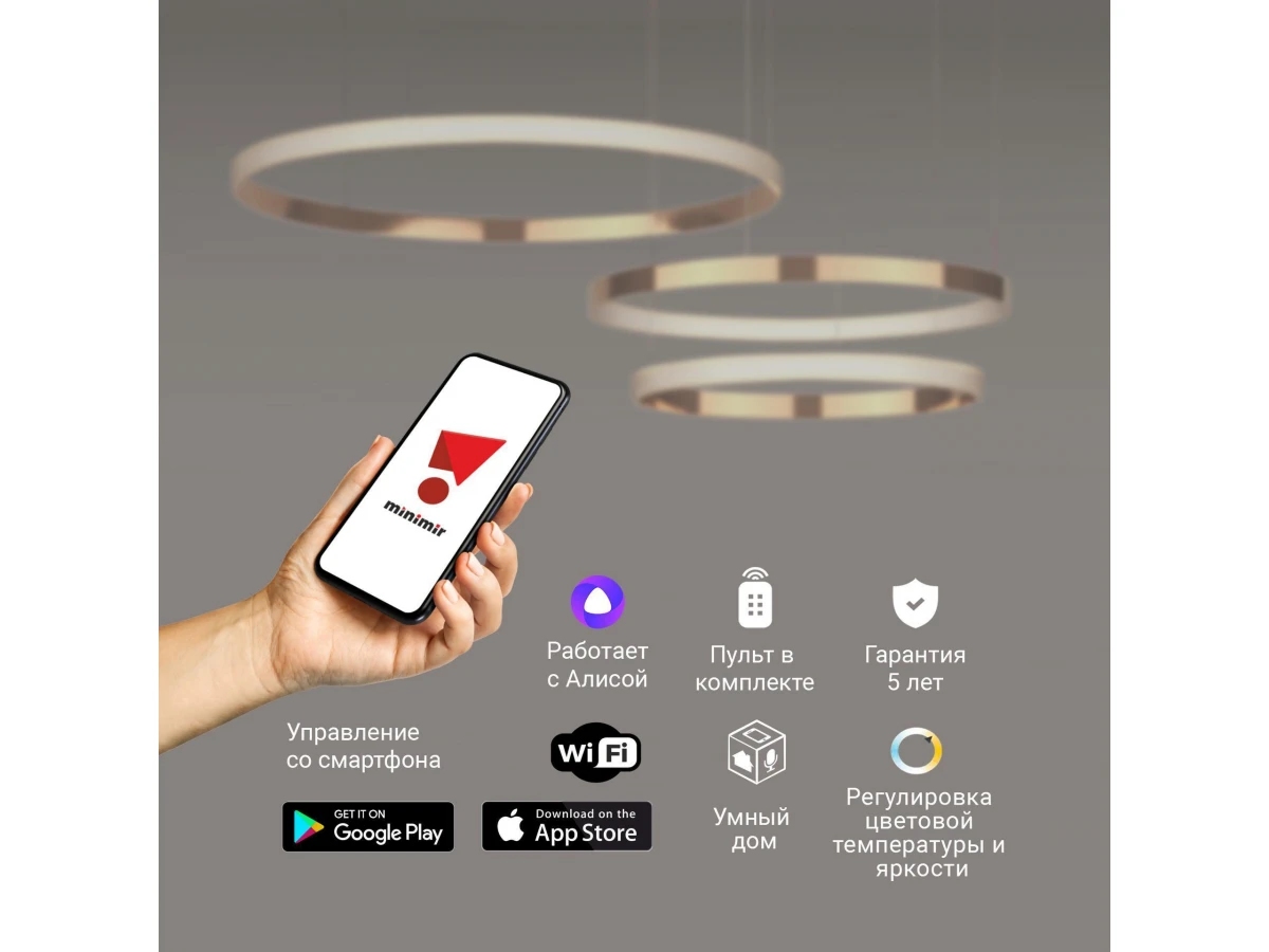 Светодиодная люстра с управлением по Wi-Fi 90275/3 медный поможет организовать качественное освещение на площади 28 м кв. и украсить современный интерьер. Высокотехнологичный светильник оснащен экономичными SMD светодиодами мощностью 100 Вт, создающие световой поток 5000 лм. С помощью пульта управления и мобильного приложения Minimir Home можно регулировать яркость и цветовую температуру, доступную в трех значениях: 3300, 4200 и 6500К. В производстве подвесной LED люстры использовали высококачественный металл с надежным защитным покрытием. Подвесная светодиодная люстра подходит для установки на любые поверхности, в том числе монтируется в натяжные и подвесные потолки. Наш интернет-магазин предлагает купить подвесной светодиодный светильник с управлением по Wi-Fi по низкой цене с доставкой по России.
