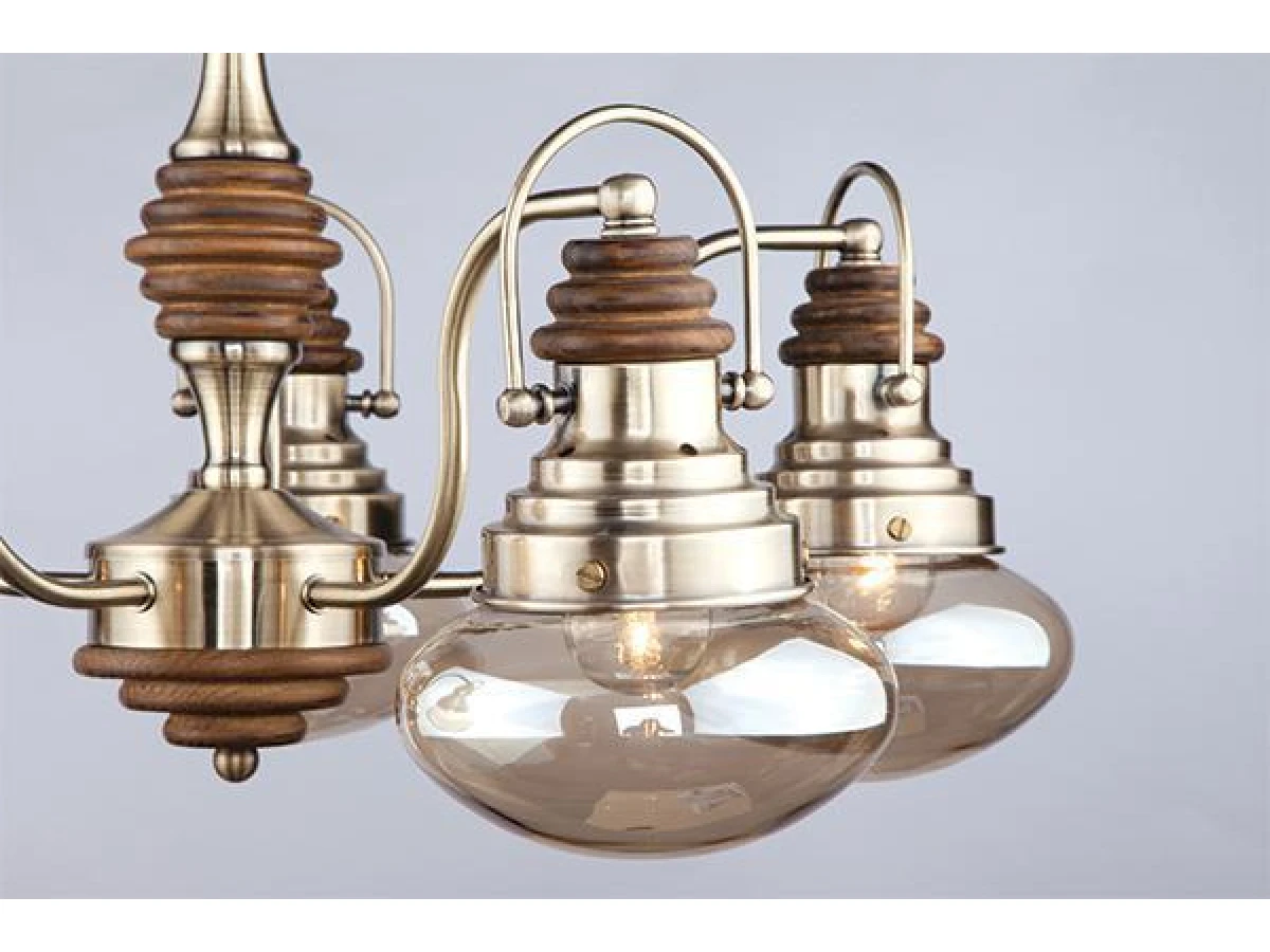 Организовать качественное освещение вам поможет современная потолочная люстра с пяти плафонами из стекла 266/5 античная бронза. Простые эргономичные формы и умеренные тона станут прекрасным дополнением для вашего интерьера. Люстра украсит помещение и создаст полноценное освещение на площади 24 м². В люстре рекомендуется использовать сменные лампы с цоколем Е27 с максимальной мощностью 60 Вт. В производстве люстры использовали высококачественный металл с надежным защитным покрытием и закаленное стекло. В нашем интернет-магазине вы можете купить потолочную люстру по выгодной цене с доставкой по Москве, Санкт-Петербургу и России.