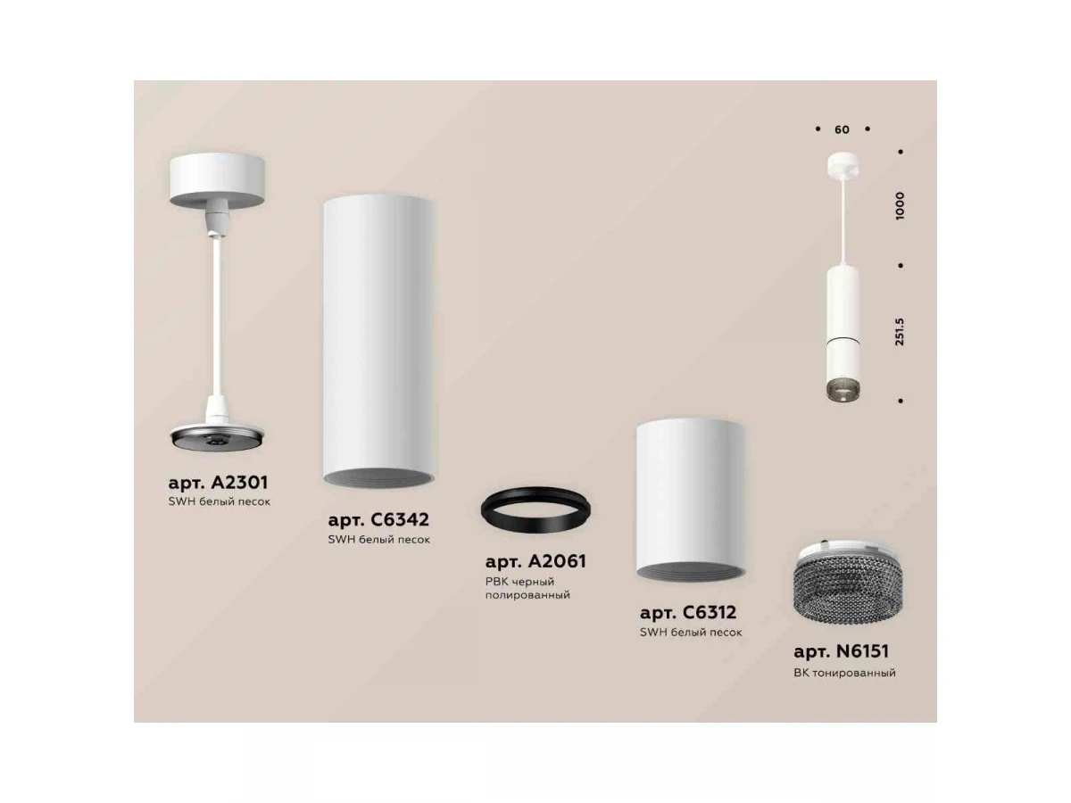 Комплект подвесного светильника Ambrella light Techno Spot XP6312010 SWH/BK белый песок/тонированный (A2301, C6342, A2061, C6312, N6151)