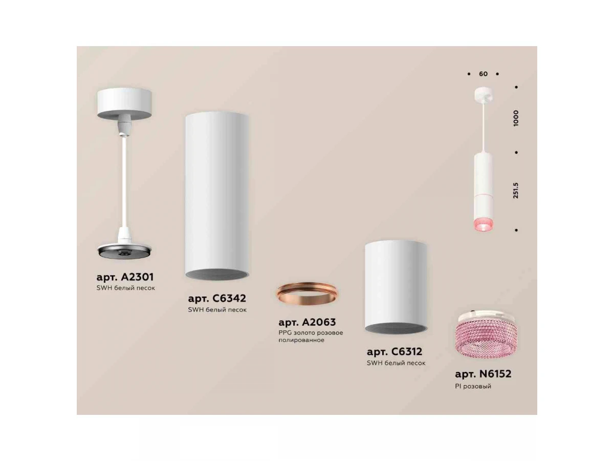 Комплект подвесного светильника Ambrella light Techno Spot XP6312030 SWH/PI белый песок/розовый (A2301, C6342, A2063, C6312, N6152)