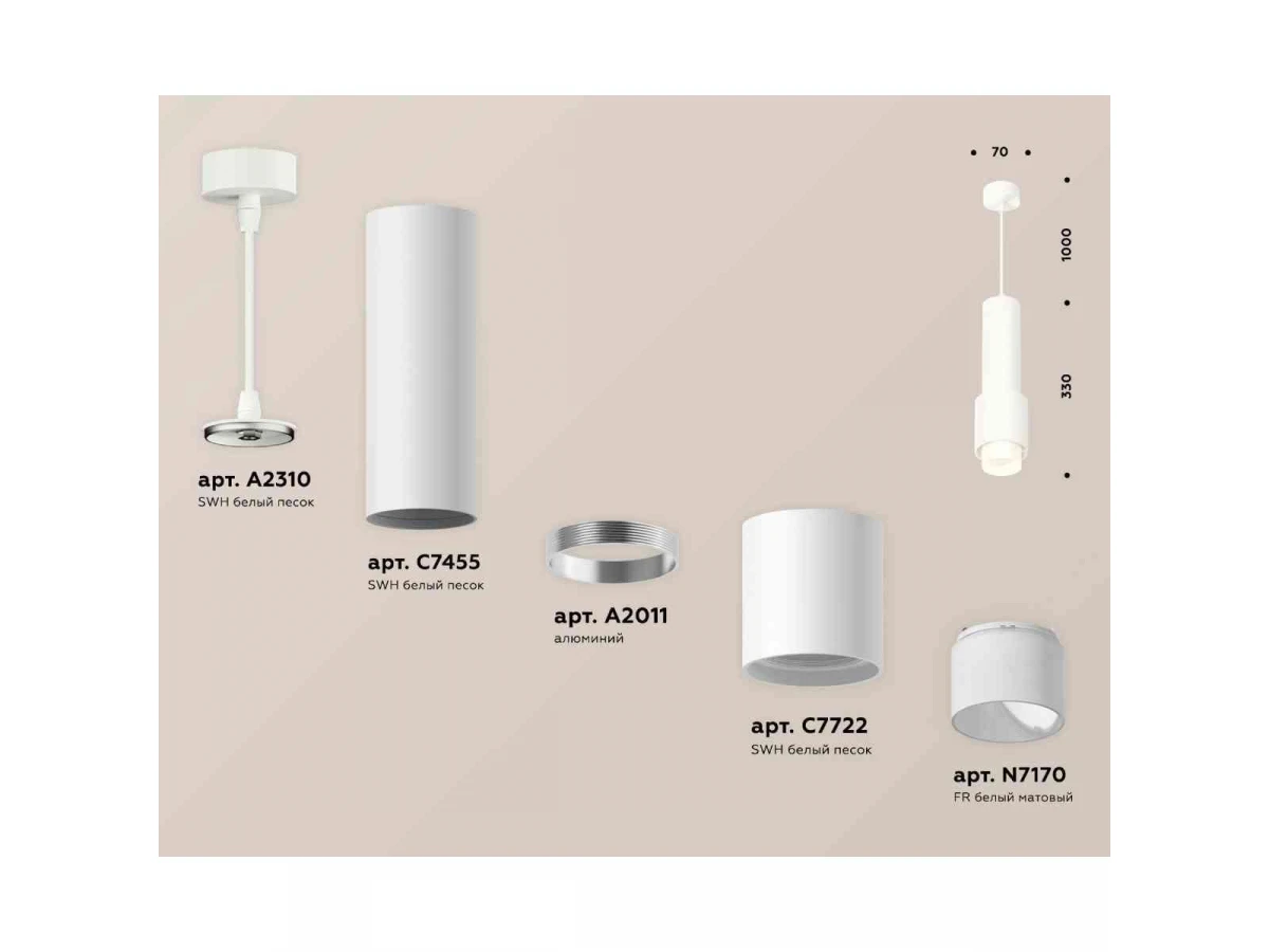 Комплект подвесного светильника Ambrella light Techno Spot XP7722010 SWH/FR белый песок/белый матовый (A2310, C7455, A2011, C7722, N7170)