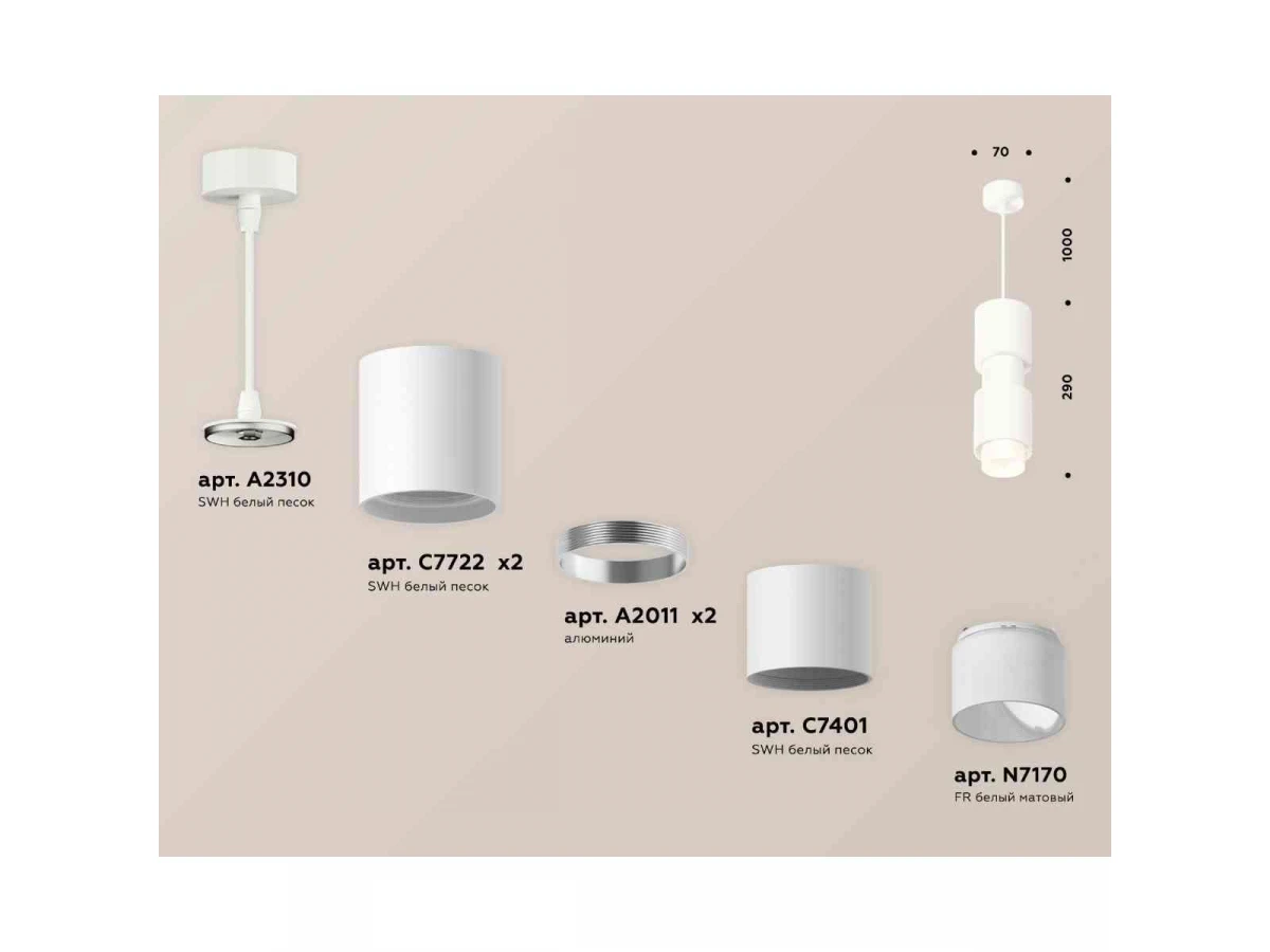 Комплект подвесного светильника Ambrella light Techno Spot XP7722032 SWH/FR белый песок/белый матовый (A2310,C7722,A2011,C7401,A2011,C7722,N7170)