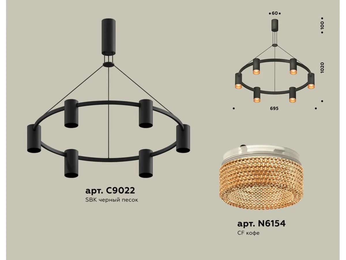 Комплект подвесного светильника Ambrella light Traditional DIY черный песок/кофе (С9022, N6154) XB9022202