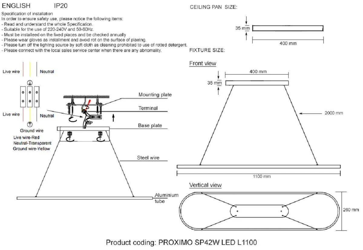Подвесной светильник Crystal Lux PROXIMO SP42W LED L1100 BLACK
