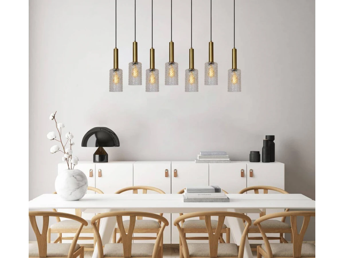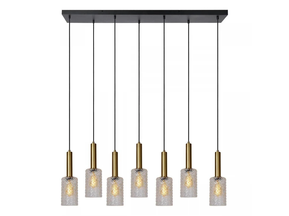 Неподражаемая модель 45498/07/60 от бельгийской компании Lucide относится к коллекции Coralie и отлично подойдет для установки на потолок кухни, оформленной в стиле модерн. Подвесной светильник Lucide Coralie 45498/07/60 с цилиндрическими плафонами осветит помещение площадью 18.7 кв. м. Производитель Lucide рекомендует использовать для устройства лампы накаливания с цоколем E27 и мощностью 40 W. Прибор произведен с использованием материалов: стекло и металл и может использоваться для натяжного потолка. Основным цветом товара является золотой, черный и прозрачный. Подвесной светильник 45498/07/60 продается по цене 77875 руб. Торопитесь сделать заказ в интернет-магазине ВоронежСвет.