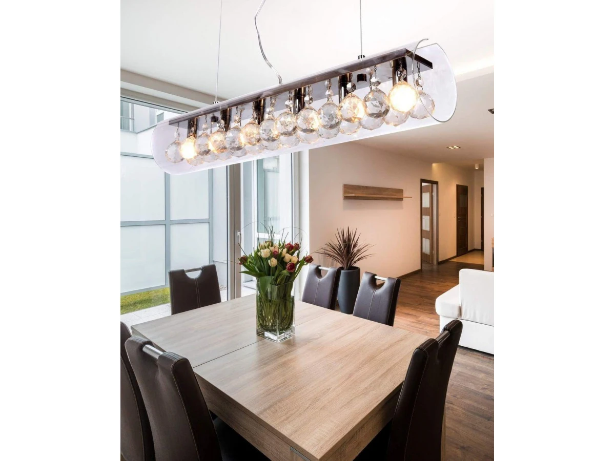 Выдающаяся модель LDP 1057-600 от польской компании Lumina Deco относится к коллекции Briza и отлично подойдет для установки на потолок спальни, оформленной в стиле модерн. Подвесной светильник Lumina Deco Briza LDP 1057-600 с цилиндрическими плафонами осветит помещение площадью 30 кв. м. Производитель Lumina Deco рекомендует использовать для устройства галогеновые лампы с цоколем G9 и мощностью 40 W. Прибор произведен с использованием материалов: хрусталь, металл и стекло и может использоваться для натяжного потолка. Основным цветом товара является хромовый и прозрачный. Подвесной светильник LDP 1057-600 продается по цене 17200 руб. Торопитесь сделать заказ в интернет-магазине ВоронежСвет.