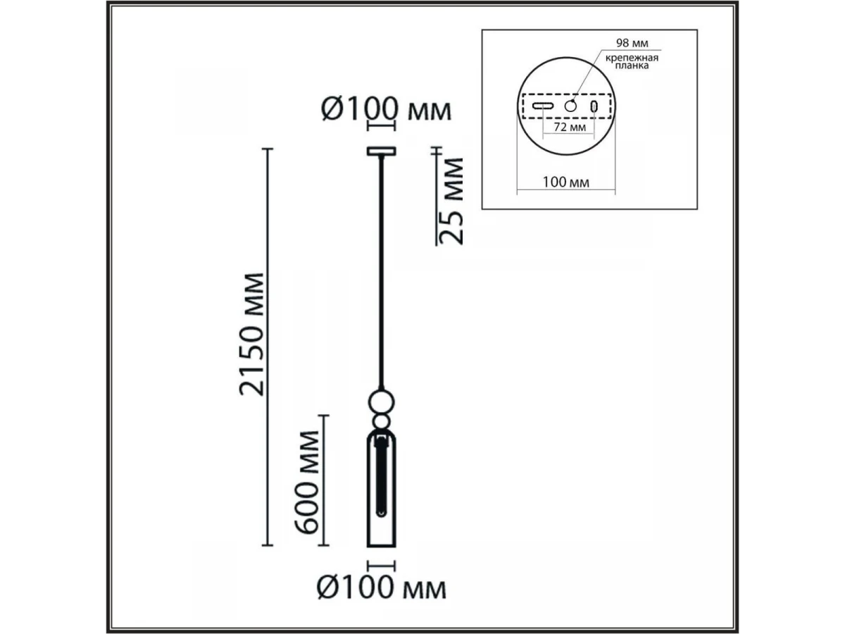 Длина подвеса, мм: