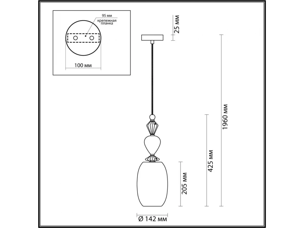 Длина подвеса, мм: