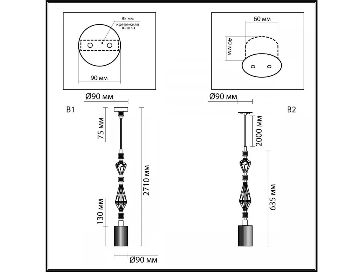 Длина подвеса, мм: