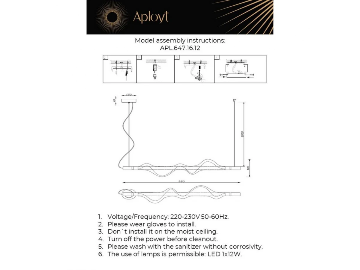 Незаурядная модель APL.647.16.12 от польской компании Aployt относится к коллекции Adilin и отлично подойдет для установки на потолок столовой, оформленной в стиле арт-деко. Подвесной светодиодный светильник Aployt Adilin APL.647.16.12 с волнообразными плафонами осветит помещение площадью 3 кв. м. холодным светом. Осветительный элемент встроен в конструкцию и не требует приобретения дополнительных лампочек. Прибор произведен с использованием материалов: пластик и металл и может использоваться для натяжного потолка. Основным цветом товара является черный и серебристо-стальной. Подвесной светодиодный светильник APL.647.16.12 продается по цене 22160 руб. Торопитесь сделать заказ в интернет-магазине ВоронежСвет.