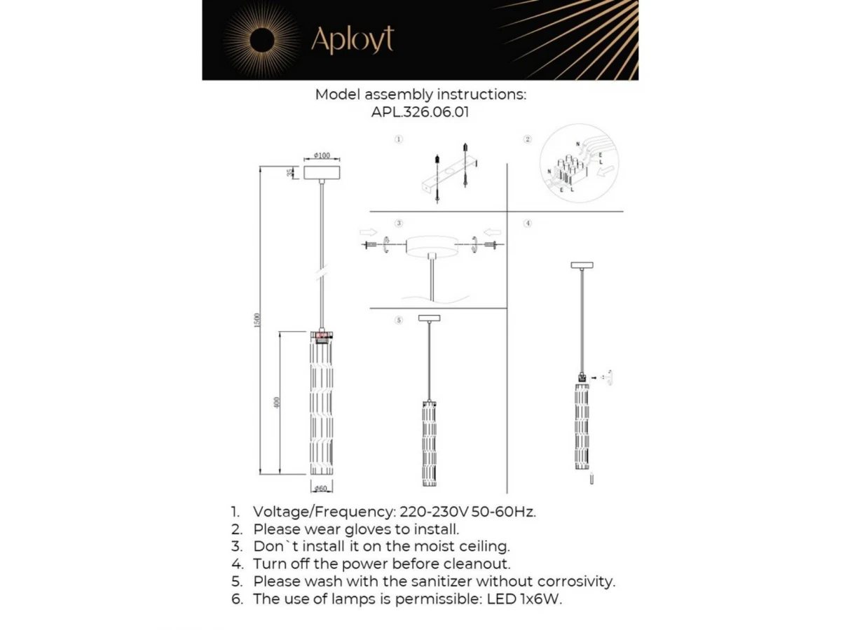 Подвесной светодиодный светильник Aployt Dzhosi APL.326.06.01
