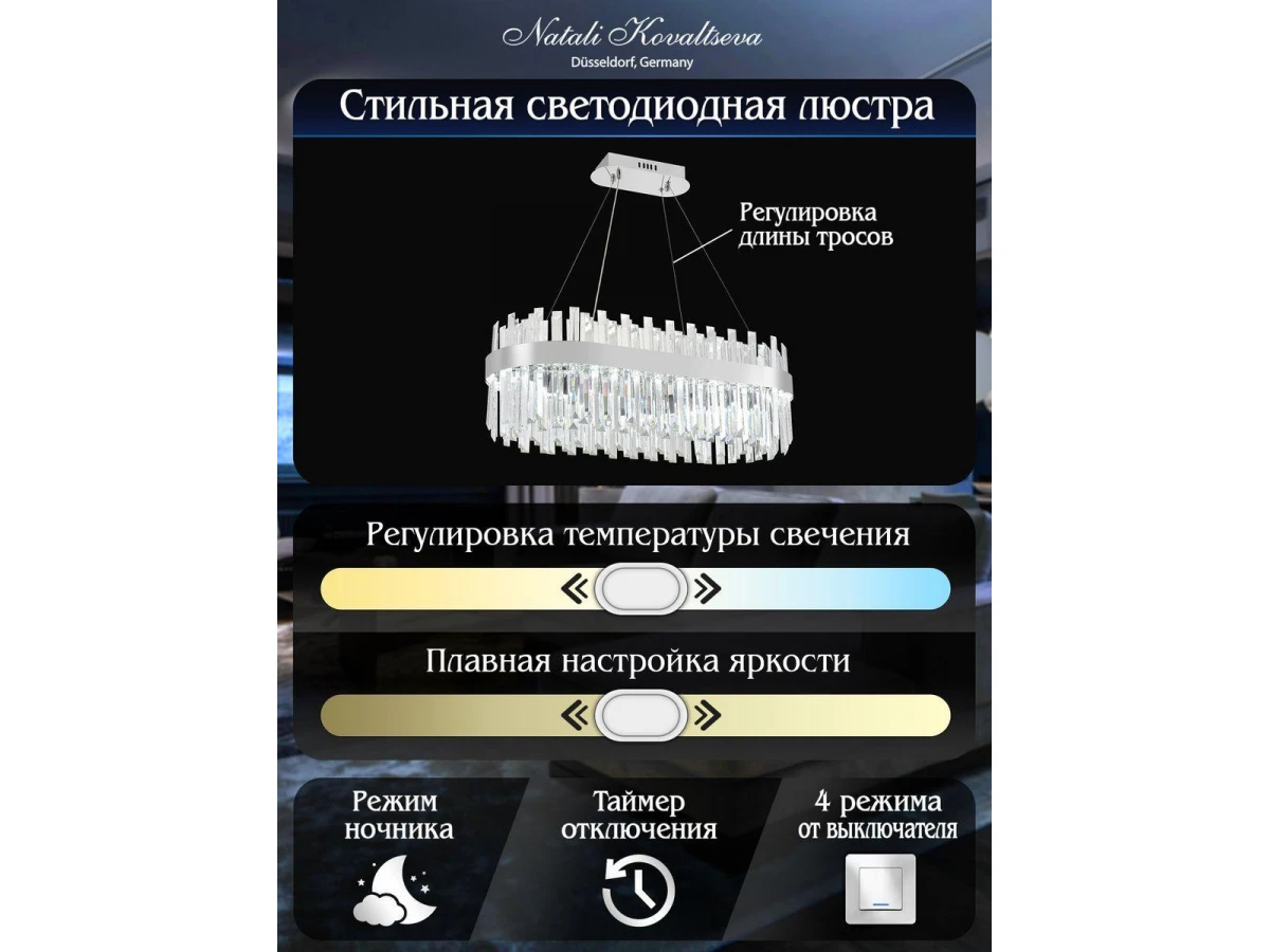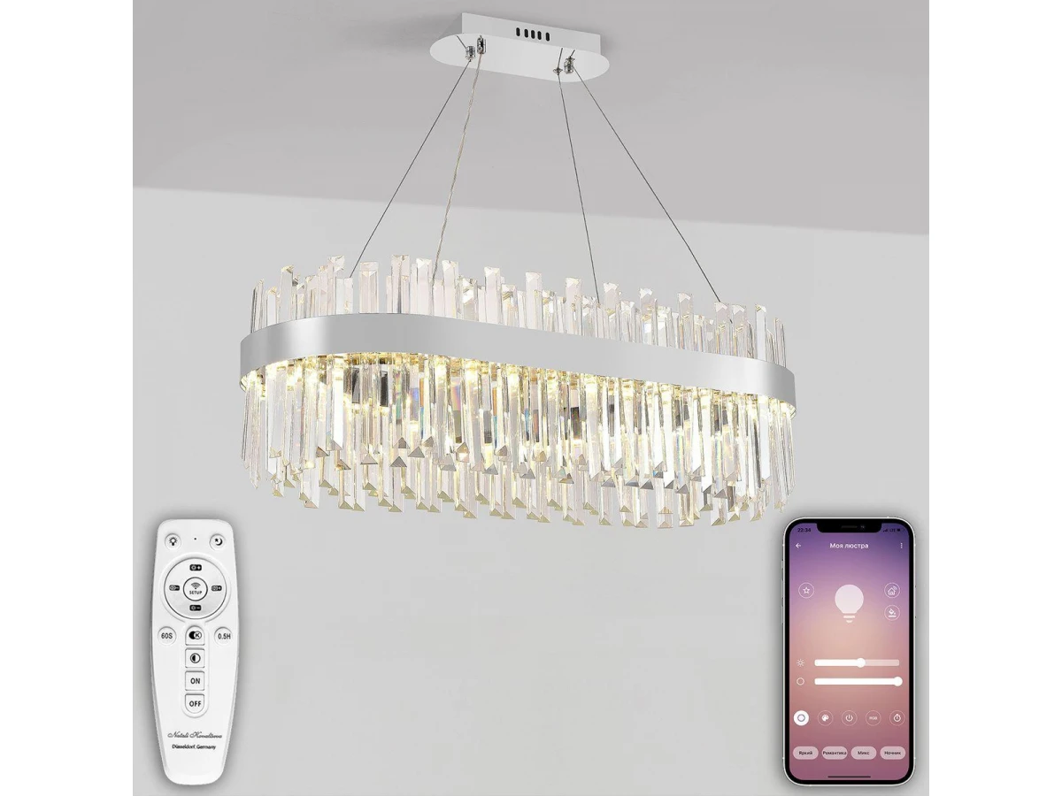 Несравненная модель Led Lamps 81275 от немецкой компании Natali Kovaltseva относится к коллекции Smart Нимбы и отлично подойдет для установки на потолок в гостиной, оформленной в стиле модерн. Подвесной светодиодный светильник Natali Kovaltseva Smart Нимбы Led Lamps 81275 с овальными плафонами осветит помещение площадью 20 кв. м. холодным светом. Осветительный элемент встроен в конструкцию и не требует приобретения дополнительных лампочек. Прибор произведен с использованием материалов: хрусталь и металл и может использоваться для натяжного потолка. В комплект поставки входит пульт дистанционного управления. Основным цветом товара является хромовый и серебристо-стальной. Торопитесь сделать заказ в интернет-магазине ВоронежСвет.