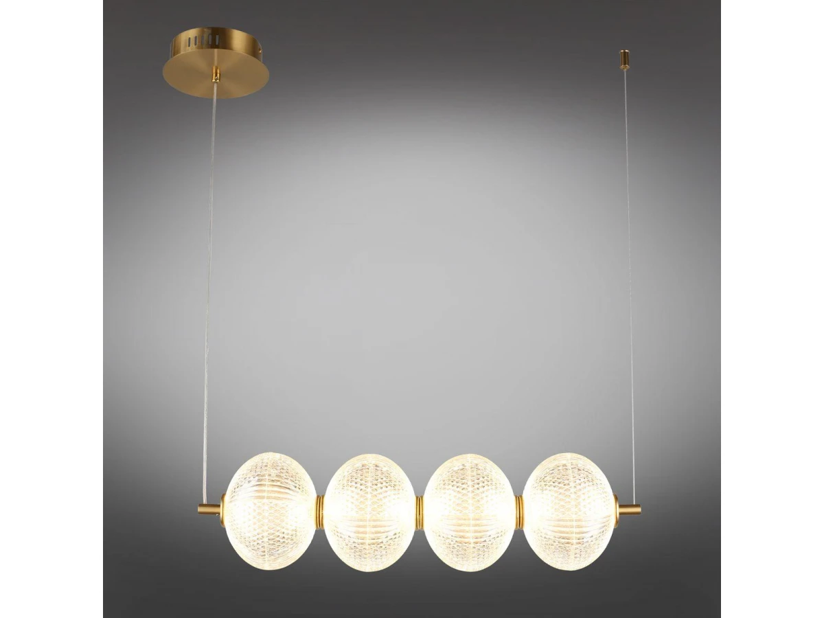 Изящная модель OML-68803-04 от итальянской компании Omnilux относится к коллекции Cedrello и отлично подойдет для установки на потолок кухни, оформленной в стиле модерн. Подвесной светодиодный светильник Omnilux Cedrello OML-68803-04 с плафонами в виде шаров осветит помещение площадью 4 кв. м. холодным светом. Осветительный элемент встроен в конструкцию и не требует приобретения дополнительных лампочек. Прибор произведен с использованием материалов: пластик, металл и акрил и может использоваться для натяжного потолка. Основным цветом товара является латунный. Подвесной светодиодный светильник OML-68803-04 продается по цене 10980 руб. Торопитесь сделать заказ в интернет-магазине ВоронежСвет.