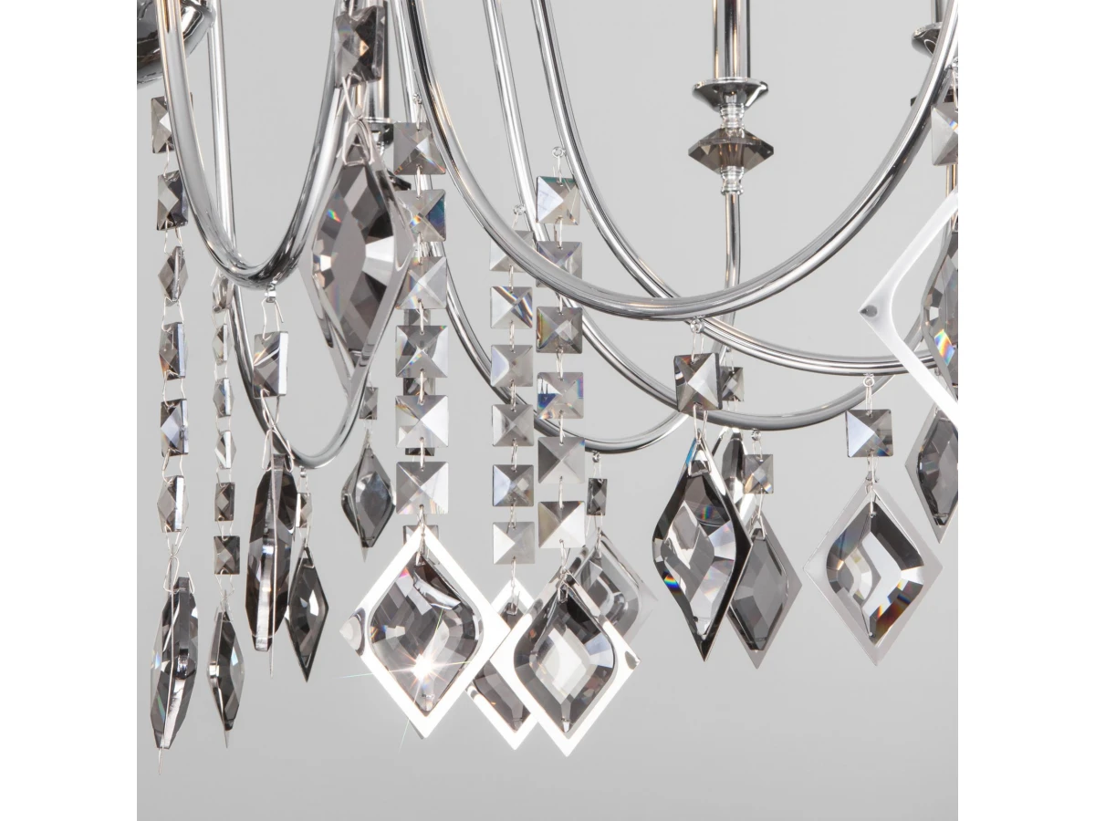 Подвесная люстра с хрусталем Eurosvet 10110/12 хром/дымчатый хрусталь Strotskis