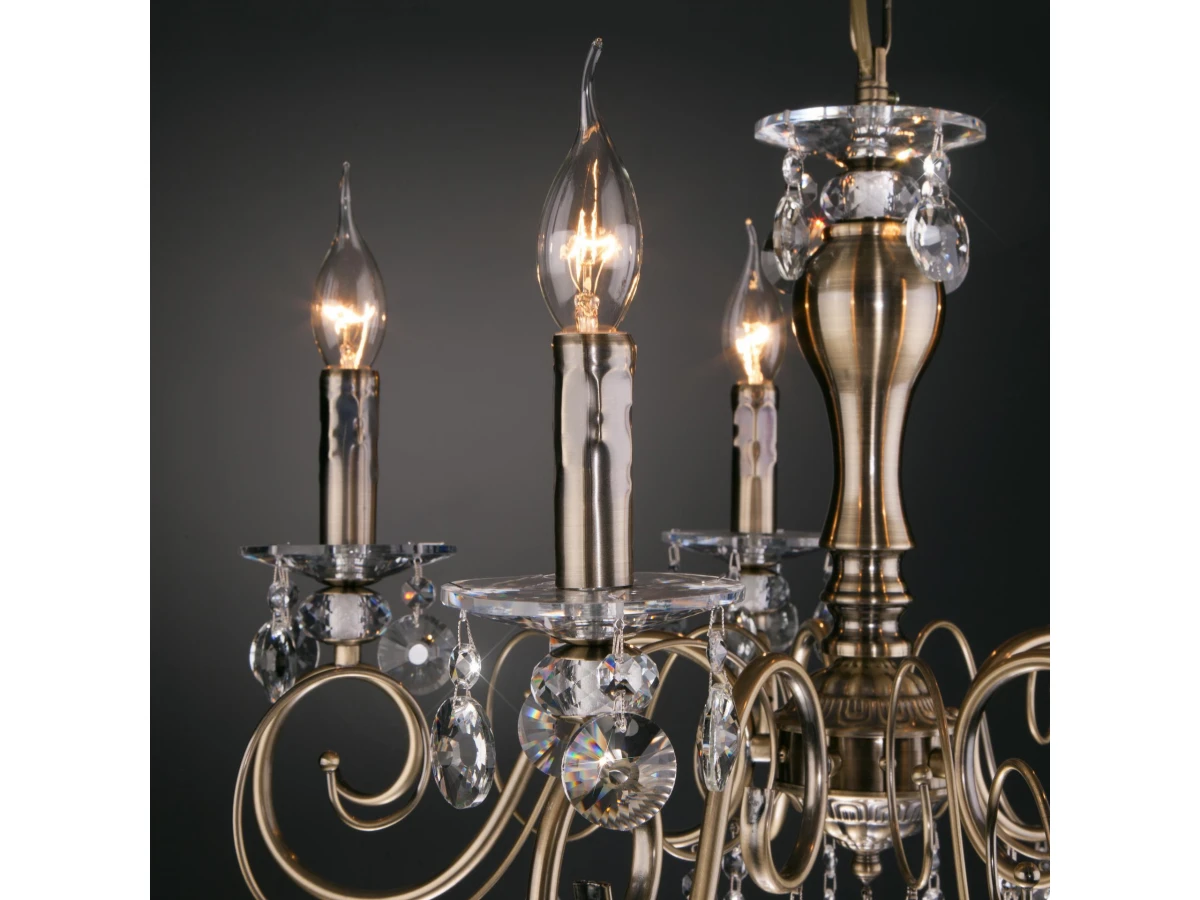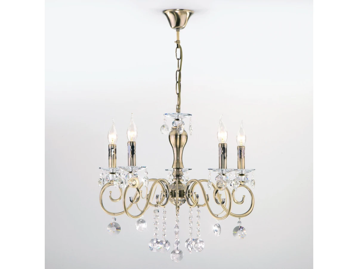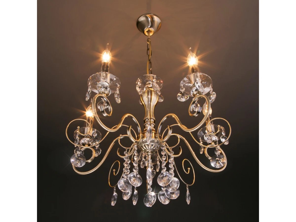 Классическая хрустальная люстра на 5 рожков в цвете античная бронза/прозрачный хрусталь Strotskis преобразит потолочное пространство и создаст в вашем помещении комфортное полноценное освещение на площади 23 м кв. Изящные формы и классический стиль добавят вашей гостиной утонченного аристократизма. Декоративные рожки в виде подсвечников, украшенные сменными лампами с цоколем E14 типа свеча на ветру переливаются на свету яркими завораживающими бликами. В производстве подвесной люстры использовали особое стекло с эффектной огранкой и высококачественный металл с надежным защитным покрытием. В нашем интернет-магазине вы можете купить подвесную хрустальную люстру по выгодной цене с доставкой по Москве и России.