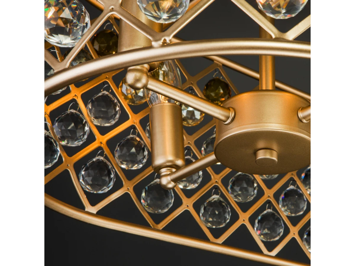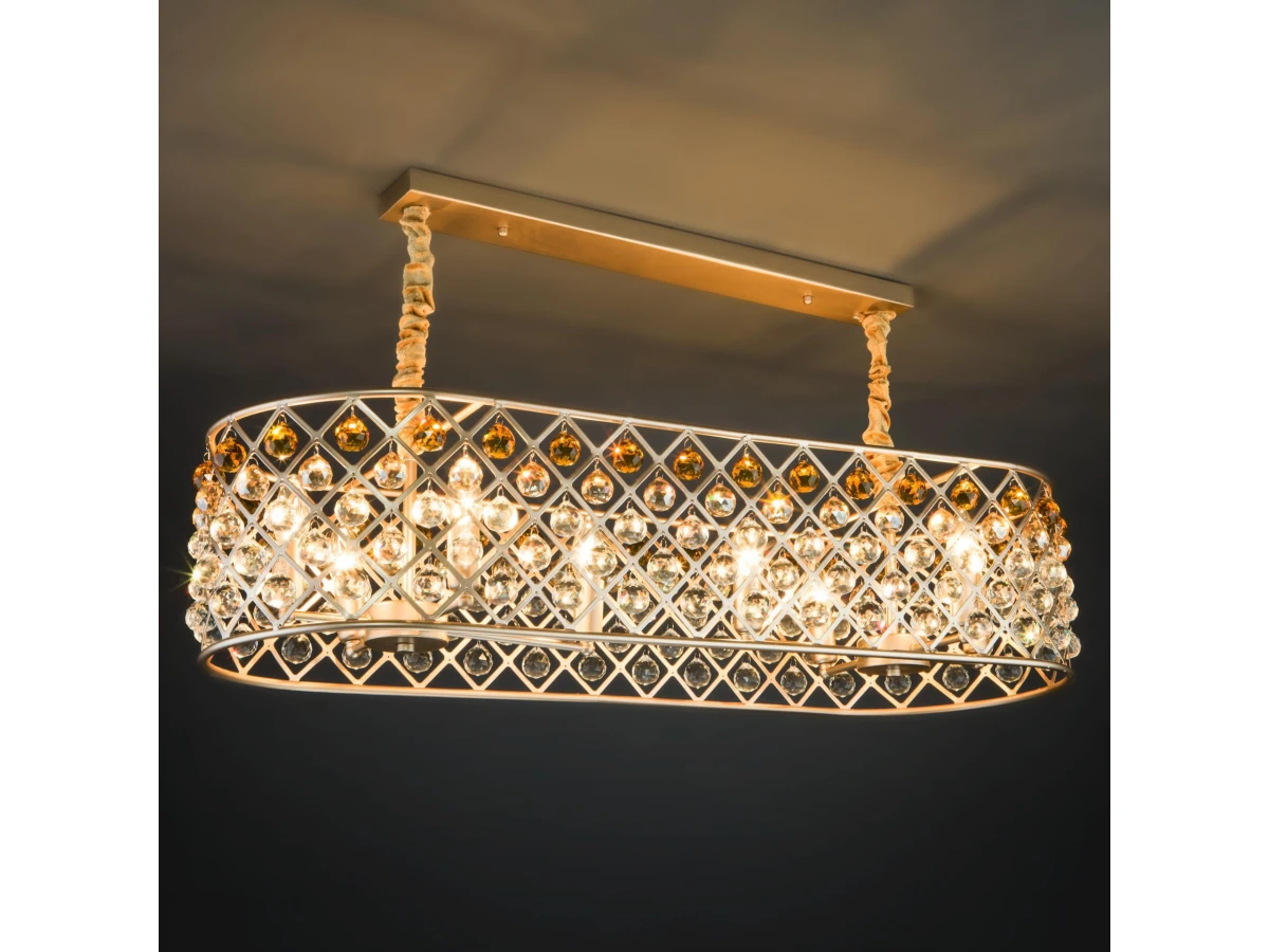золото преобразит потолочное пространство и создаст в вашем помещении полноценное освещение на площади 24 м кв. Люстра украшена декоративным хрусталем, который переливается на свету искристыми завораживающими бликами и оснащена сменными лампами с цоколем E14 типа свеча . В производстве подвесной люстры использовали особое стекло с эффектной огранкой и высококачественный металл с надежным защитным покрытием. В интернет-магазине Минимир легко купить подвесную хрустальную люстру с доставкой по Москве, Санкт-Петербургу и России.