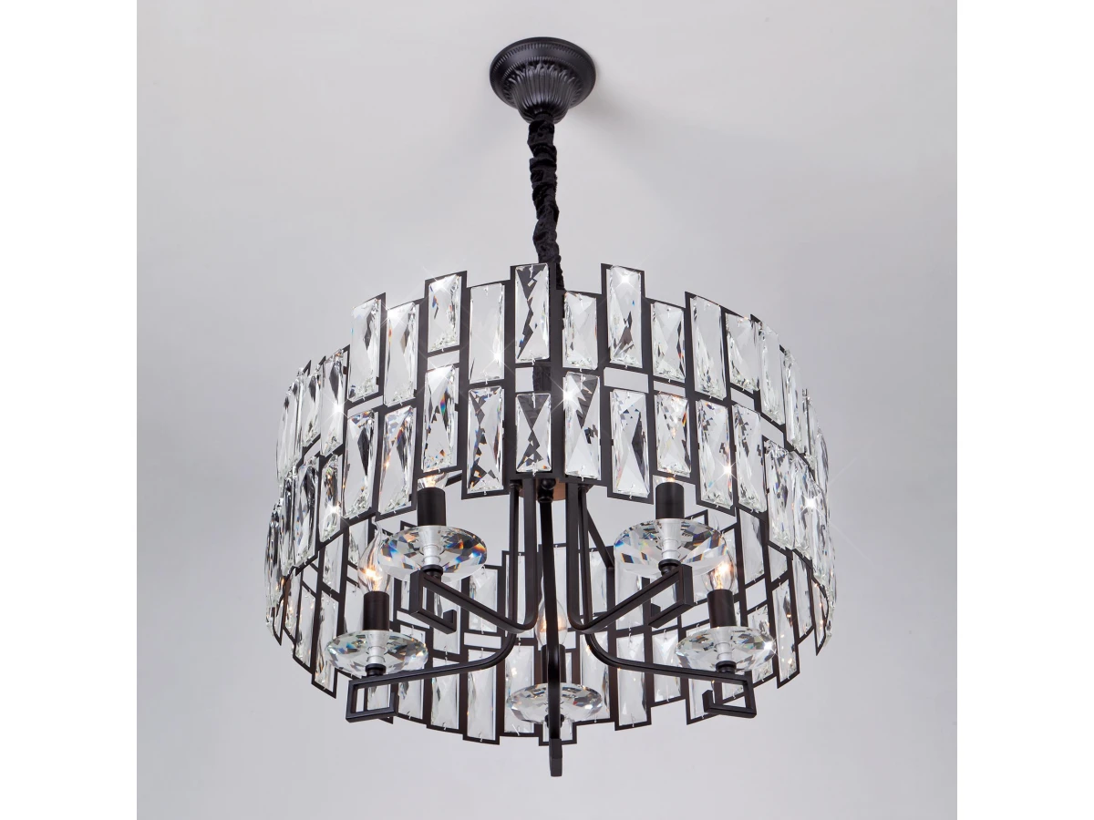 Выразительная хрустальная люстра на 5 рожков в цвете черный преобразит потолочное пространство и создаст в вашем помещении полноценное освещение на площади 24 м кв. Изящные формы и классический стиль добавят вашей гостиной утонченного аристократизма. Люстра украшена декоративным хрусталем, который переливается на свету искристыми завораживающими бликами. Имеет сменные лампы с цоколем E14 с максимальной мощностью 60 Вт. В производстве потолочной люстры использовали особое стекло с эффектной огранкой и высококачественный металл с надежным защитным покрытием. В нашем интернет-магазине вы можете купить подвесную хрустальную люстру по выгодной цене с доставкой по Москве и России.