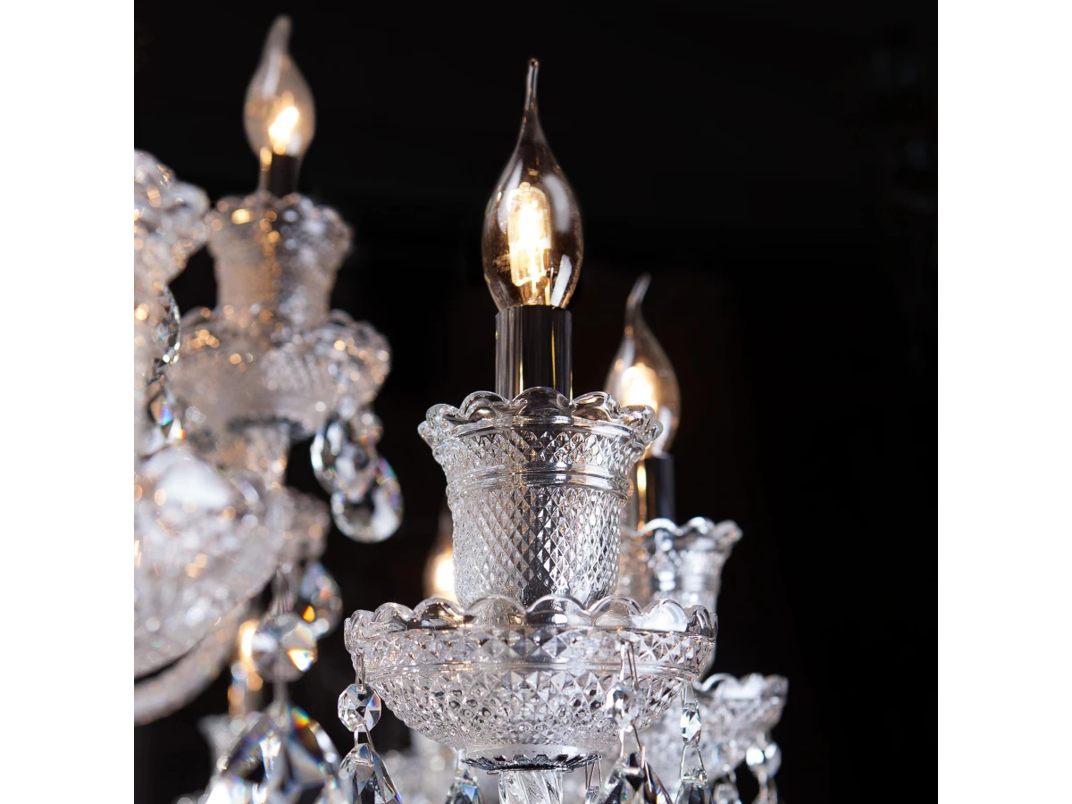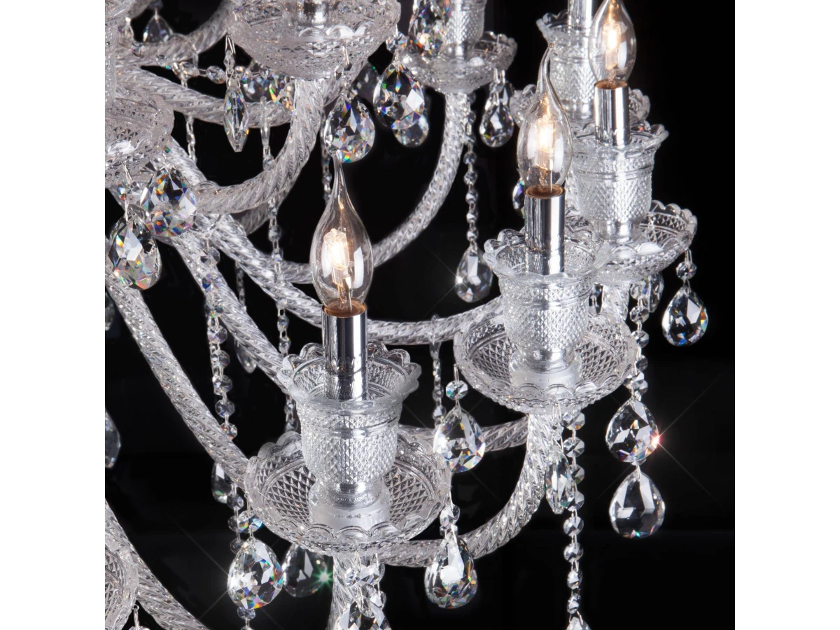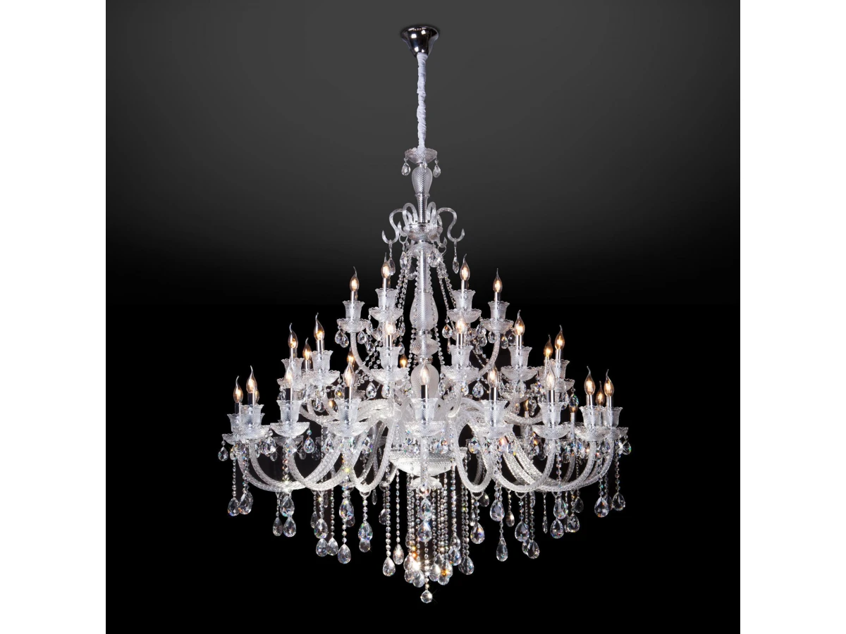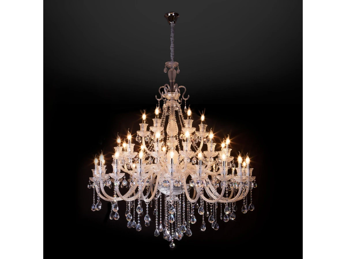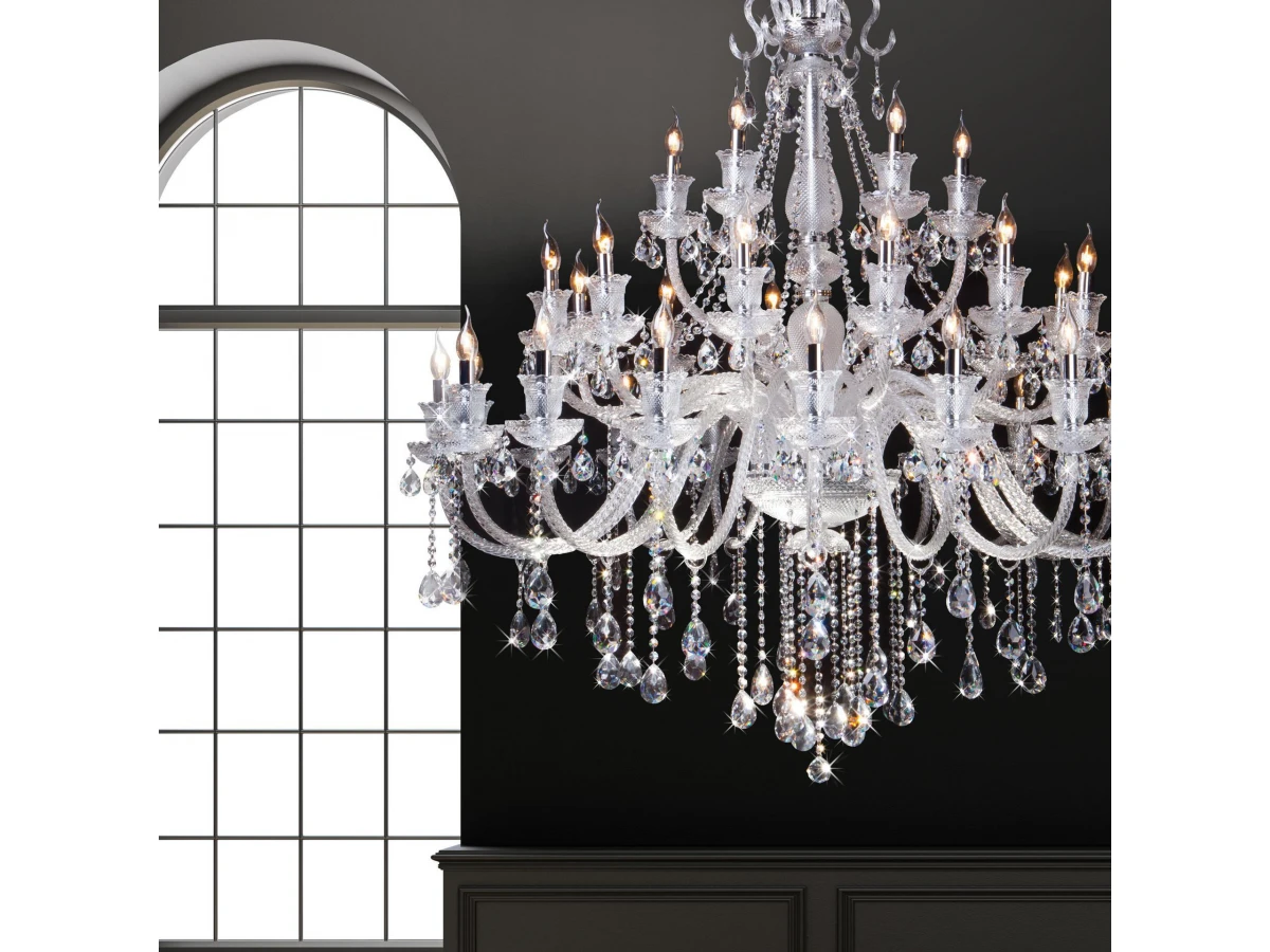 Классическая хрустальная люстра на 36 рожков в цвете хром/прозрачный преобразит потолочное пространство и создаст в вашем помещении комфортное полноценное освещение на площади 173 м кв. Блеск и праздничное сияние подвесной люстры «Gabrielle» напомнят о торжественных дворцовых интерьерах. Каждая деталь светильника продумана до мельчайших подробностей. Грациозные изгибы витых рожков завершают элегантные чаши-розетки, напоминающие хрустальные колокольчики. Воздушная арматура из прозрачного стекла с резным рисунком добавляет люстре изящества. Сочетание классических мотивов и ослепительного блистающего великолепия станут подлинным украшением интерьера, наполнив обстановку многогранными переливами. В нашем интернет-магазине вы можете купить подвесную хрустальную люстру по выгодной цене с доставкой по Москве и России.