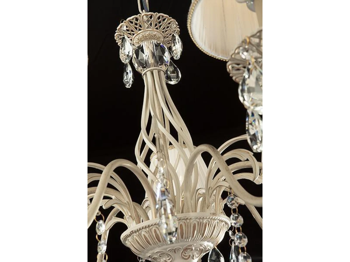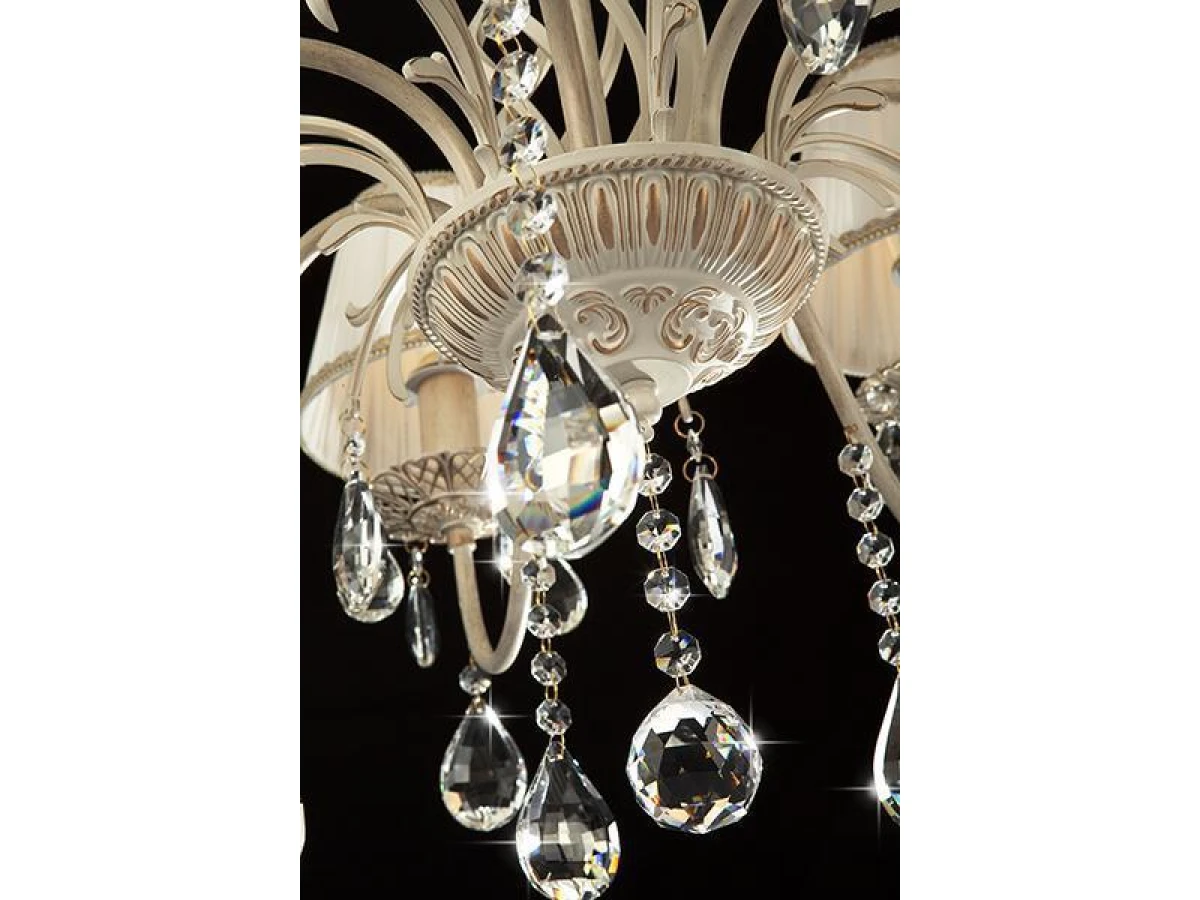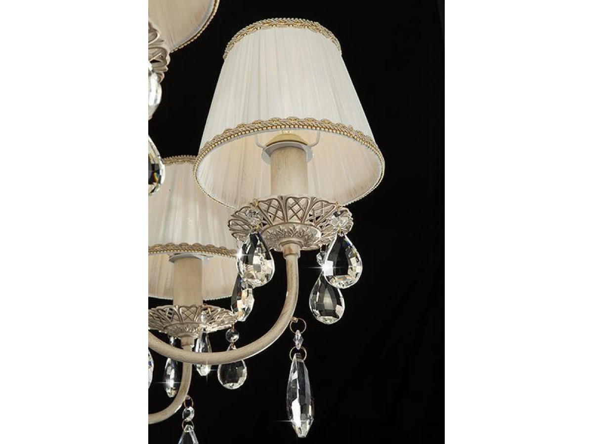 Подвесная люстра с хрусталем и абажурами 3637/7 белый с золотом / прозрачный хрусталь предназначена для создания основного освещения в современных и классических интерьерах, подходит для различных типов помещений: гостиная, спальня и рассчитана на площадь освещения 22 м². Роскошная люстра оснащена патронами с цоколем Е14, которые рассчитаны на максимальную мощность ламп 40 Вт. Люстра украшена эффектным декором из хрусталя и дополнена выразительными тканевыми абажурами. Арматура изготовлена из высококачественного металла с надежным защитным покрытием. В нашем интернет-магазине вы можете купить подвесную люстру по выгодной цене.