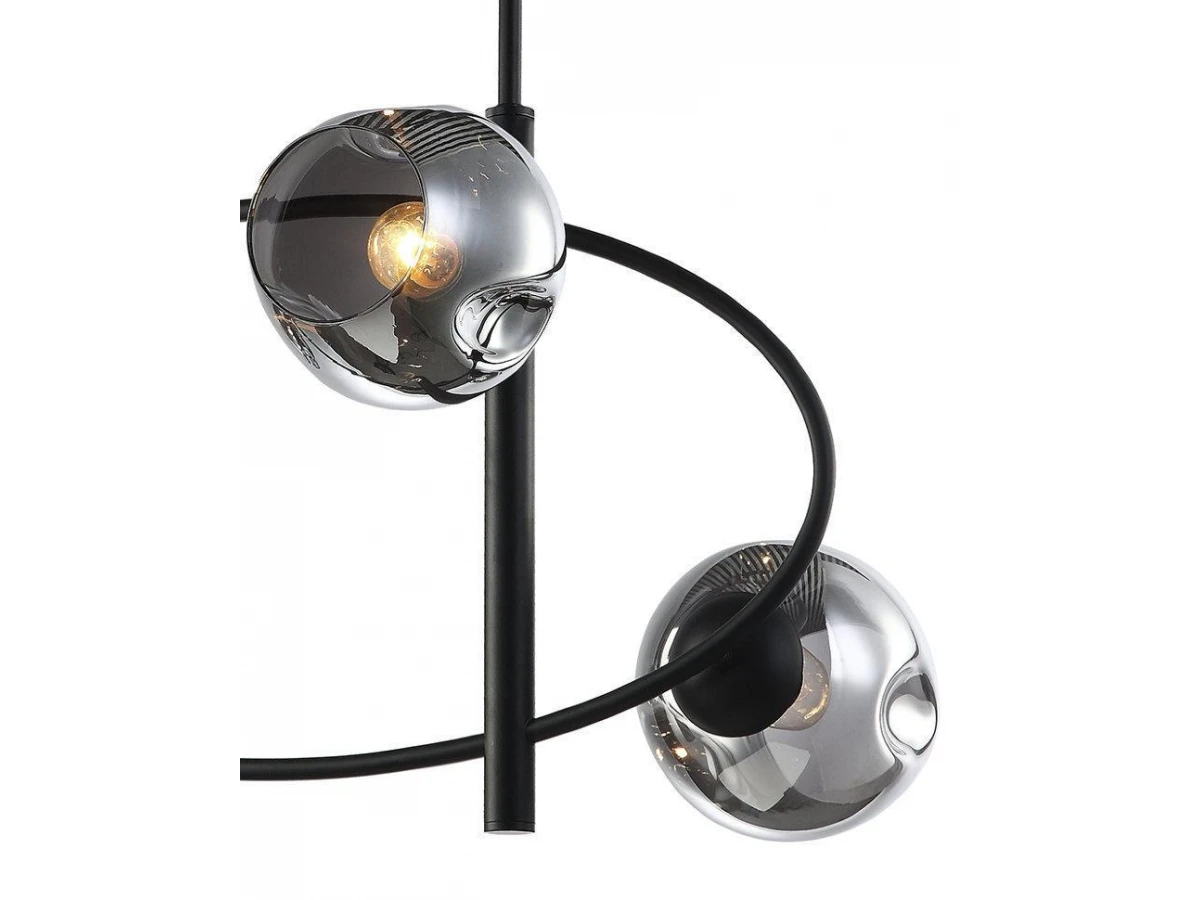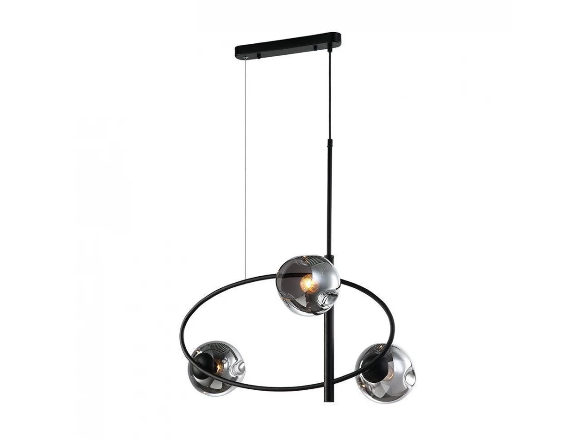 По космически экстравагантно, но по домашнему уютно выглядит строгое металлическое кольцо, на котором основательно закрепились стеклянные, тонированные плафоны. «НОЛАН» - идеальный выбор ценителей LOFT.