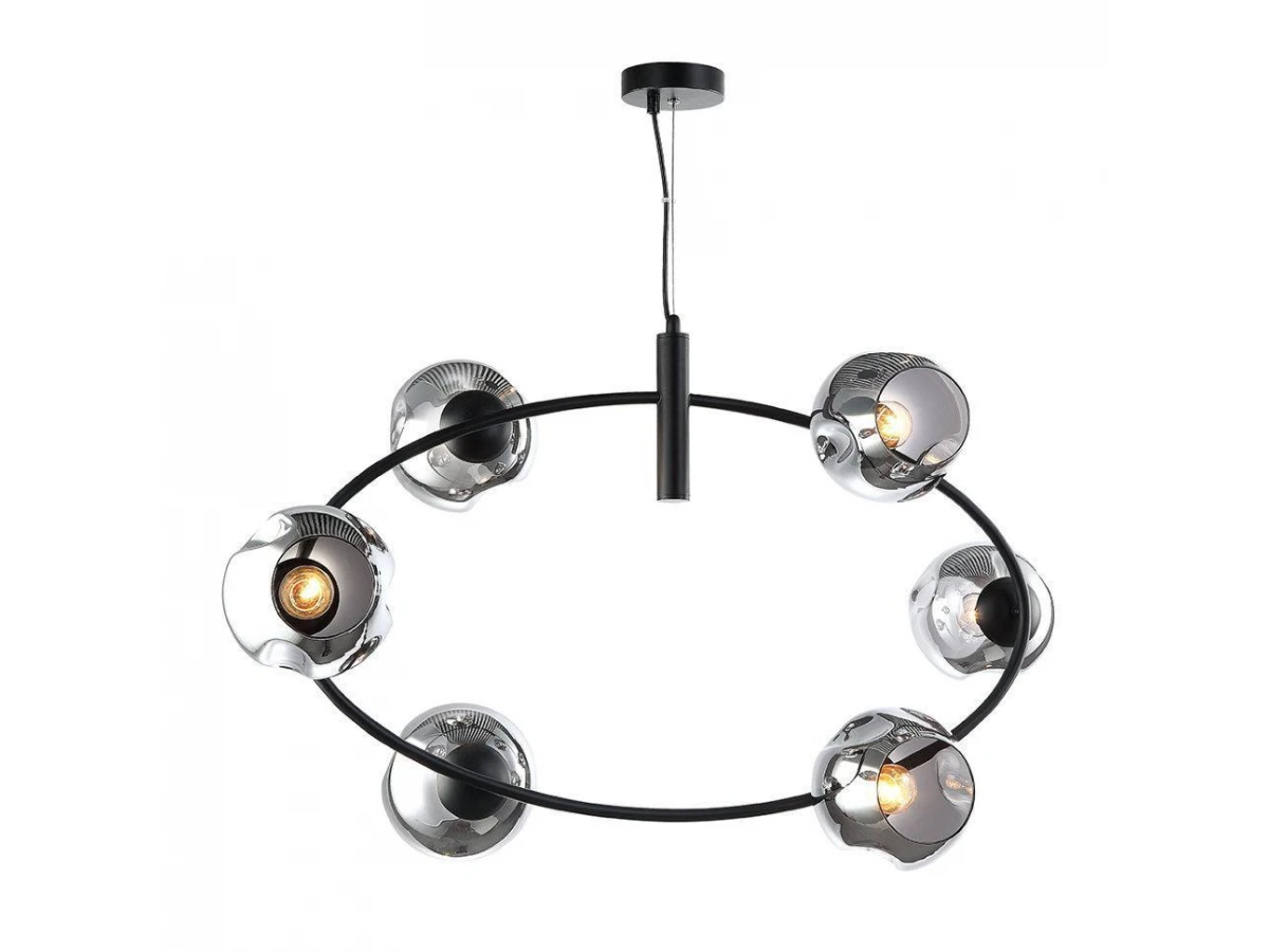 Космическим вращением экстравагантных планет вселенной вашего дома выглядит строгое металлическое кольцо, на котором основательно закрепились стеклянные, тонированные плафоны. «ФРЕРИ» - идеальный выбор ценителей LOFT.