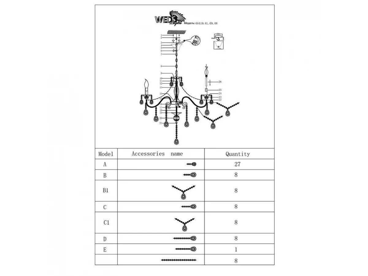 Семь Огней создает продукт от эскиза до готового шедевра. Над созданием светильников трудятся одни из лучших дизайнеров и конструкторов. Наша компания предъявляет высокие требования к производимой продукции, что подтверждено сертификатами качества.ПРЕИМУЩЕСТВАЭлегантный дизайнХрусталь превосходного качестваПРИМЕНЕНИЕПодвесная люстра предназначена для основного освещения помещенийЛюстра отлично подойдет в гостиную, зал, спальню, столовуюКОНСТРУКЦИЯ И МАТЕРИАЛЫЛюстра изготовлена из высококачественных материалов и является безопасной для человека, животных и окружающей средыКонструкция позволяет регулировать высоту люстры изменением количества звеньев цепиИспользуемые материалы: металл, хрустальИсточник света - лампы накаливания мощностью до 60Вт, светодиодные лампы мощностью до12 ВтКрепление - подвесным способом на крюкУдобный крепеж подойдет под все виды потолков: бетон, гипсокартон, натяжные и деревянные потолки.