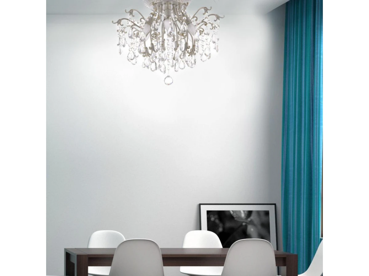 Семь Огней создает продукт от эскиза до готового шедевра. Над созданием светильников трудятся одни из лучших дизайнеров и конструкторов. Наша компания предъявляет высокие требования к производимой продукции, что подтверждено сертификатами качества.ПРЕИМУЩЕСТВАЭлегантный и стильный дизайнИспользование необычных линий и формЭффектный внешний видХорошие осветительные характеристики, благодаря многогранности хрусталяПРИМЕНЕНИЕПотолочная люстра предназначена для основного освещения помещенийЛюстра подойдет в гостиную, зал, спальню, столовую с невысокими потолкамиКОНСТРУКЦИЯ И МАТЕРИАЛЫЛюстра изготовлена из высококачественных материалов и является безопасной для человека, животных и окружающей средыИспользуемые материалы: металл, хрустальИсточник света - лампы накаливания мощностью до 60Вт, светодиодные лампы мощностью до12 ВтКрепление - накладным способом с помощью шуруповУдобный крепеж подойдет под все виды потолков: бетон, гипсокартон, натяжные и деревянные потолки.