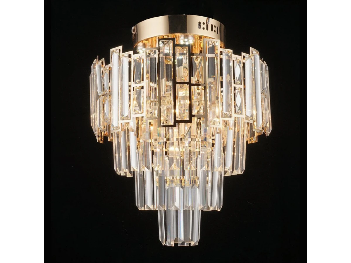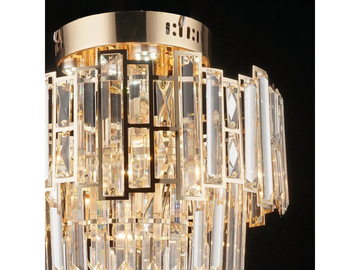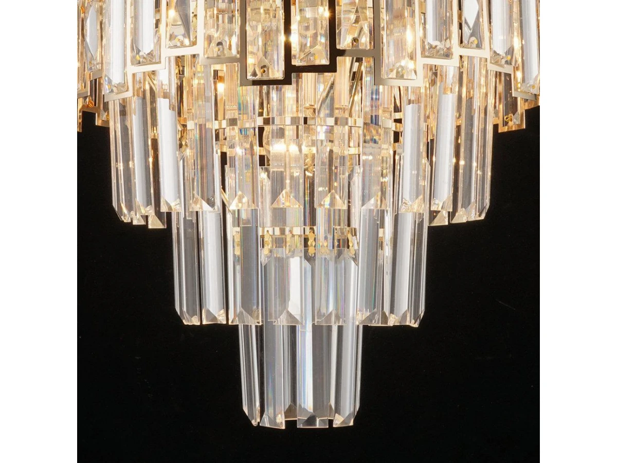 ЭЛЕОНОРА. Если искать не просто люстру, а стильный элемент декора, то коллекция "ЭЛЕОНОРА" станет главной изюминкой интерьера. Она состоит из ярусов прозрачных прямоугольников, искрящихся изнутри. Стеклянные элементы обрамлены благородным золотом. За счет такого дизайнерского решения вся серия выглядит очень дорого и подчеркнет ваш хороший вкус.