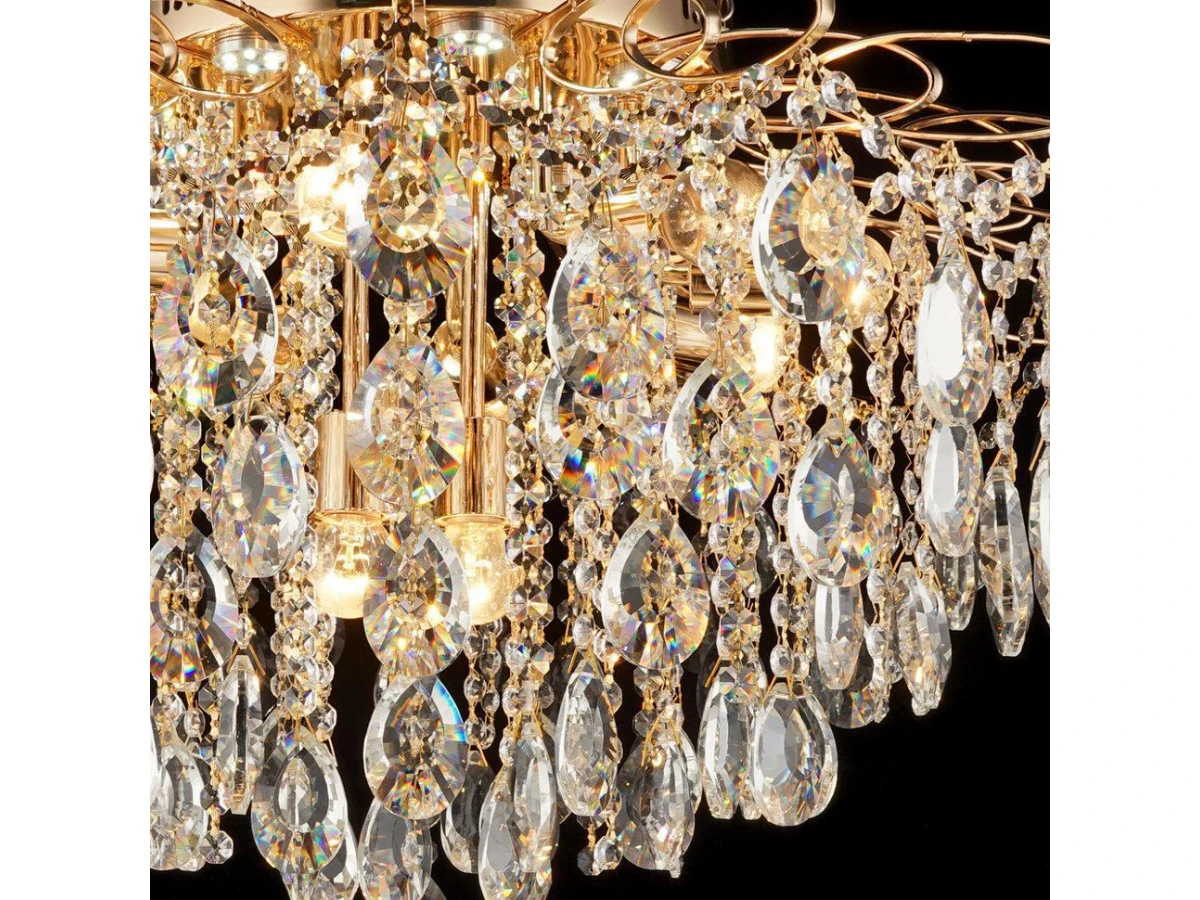 БРАНКО - Хрустальный цветок из множества сияющих лепестков, свисающих прозрачными гроздьями с тонких стеблей сияющего золота. В таком образе предстает прекрасная серия "БРАНКО". Она станет настоящим украшением и потрясающим источником света в Вашем доме.