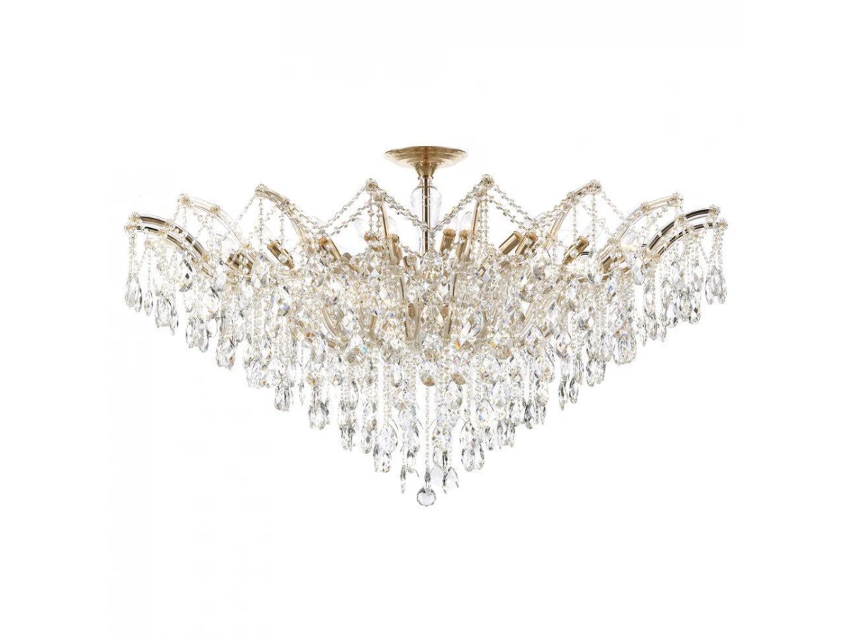 Семь Огней создает продукт от эскиза до готового шедевра. Над созданием светильников трудятся одни из лучших дизайнеров и конструкторов. Наша компания предъявляет высокие требования к производимой продукции, что подтверждено сертификатами качества.ПРЕИМУЩЕСТВАЭлегантный и стильный дизайнГальваническое покрытие цвета ЗолотоХрусталь непревзойденного качестваХорошие осветительные характеристики благодаря многогранности хрусталяПРИМЕНЕНИЕПредназначена для основного освещения помещенийПодойдет в гостиную, зал, спальню, столовую с невысокими потолкамиКОНСТРУКЦИЯ И МАТЕРИАЛЫЛюстра изготовлена из высококачественных материалов и является безопасной для человека, животных и окружающей средыИспользуемые материалы: металл, хрустальИсточник света - лампы накаливания мощностью до 40Вт, светодиодные лампы мощностью до 12ВтКрепление - накладным способом с помощью шуруповКрепеж подойдет под все виды потолков: бетон, гипсокартон, натяжные и деревянные потолки.