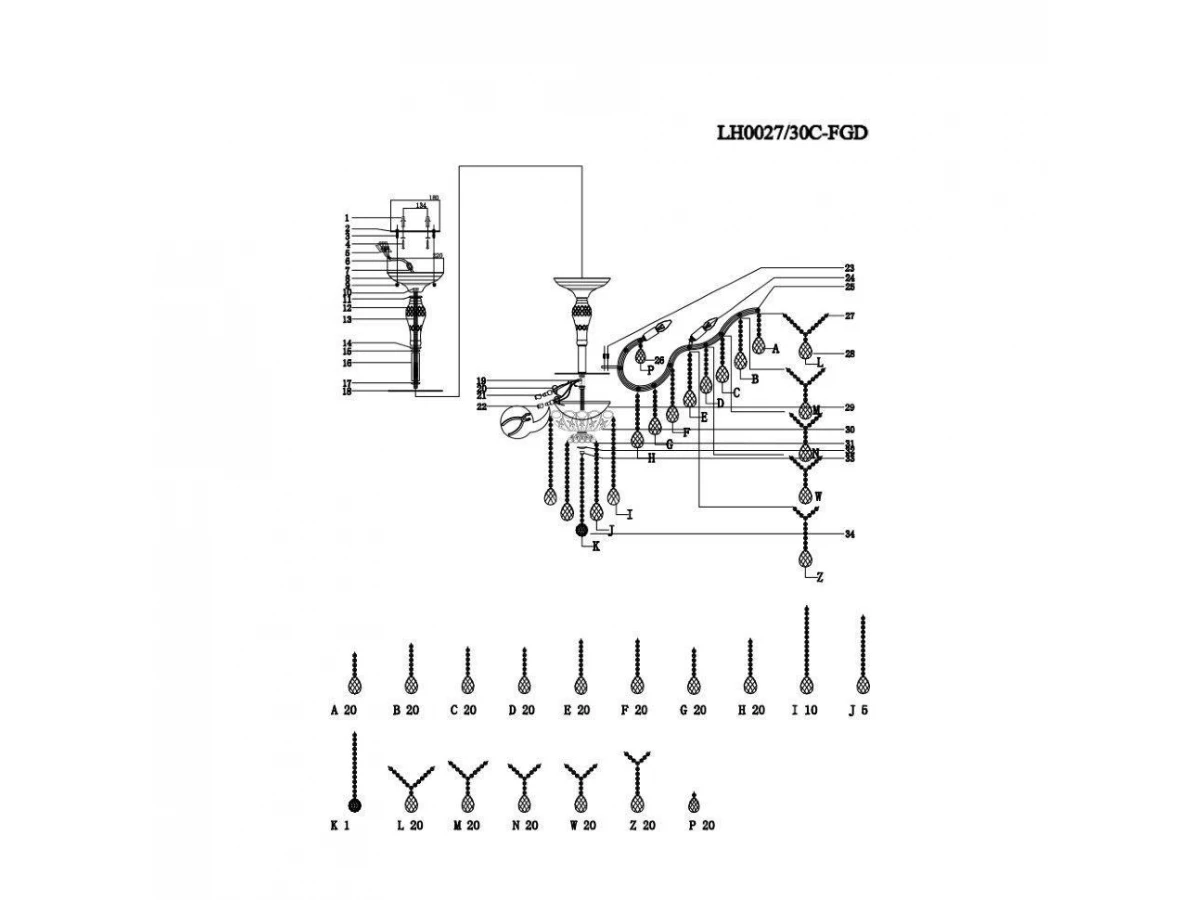 Люстра LH0027/30C-FGD KAYA