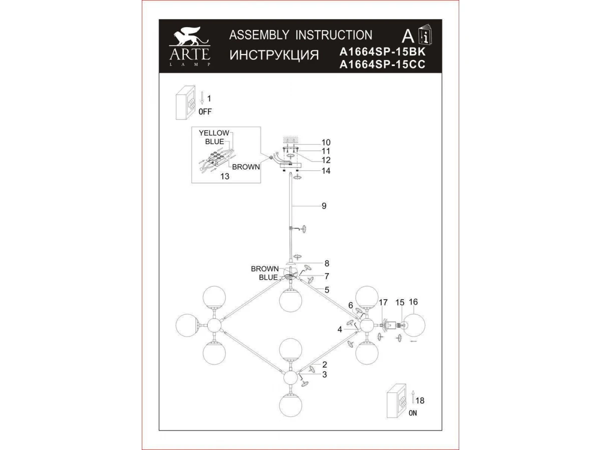 Подвесная люстра Arte Lamp Bolla A1664SP-15BK