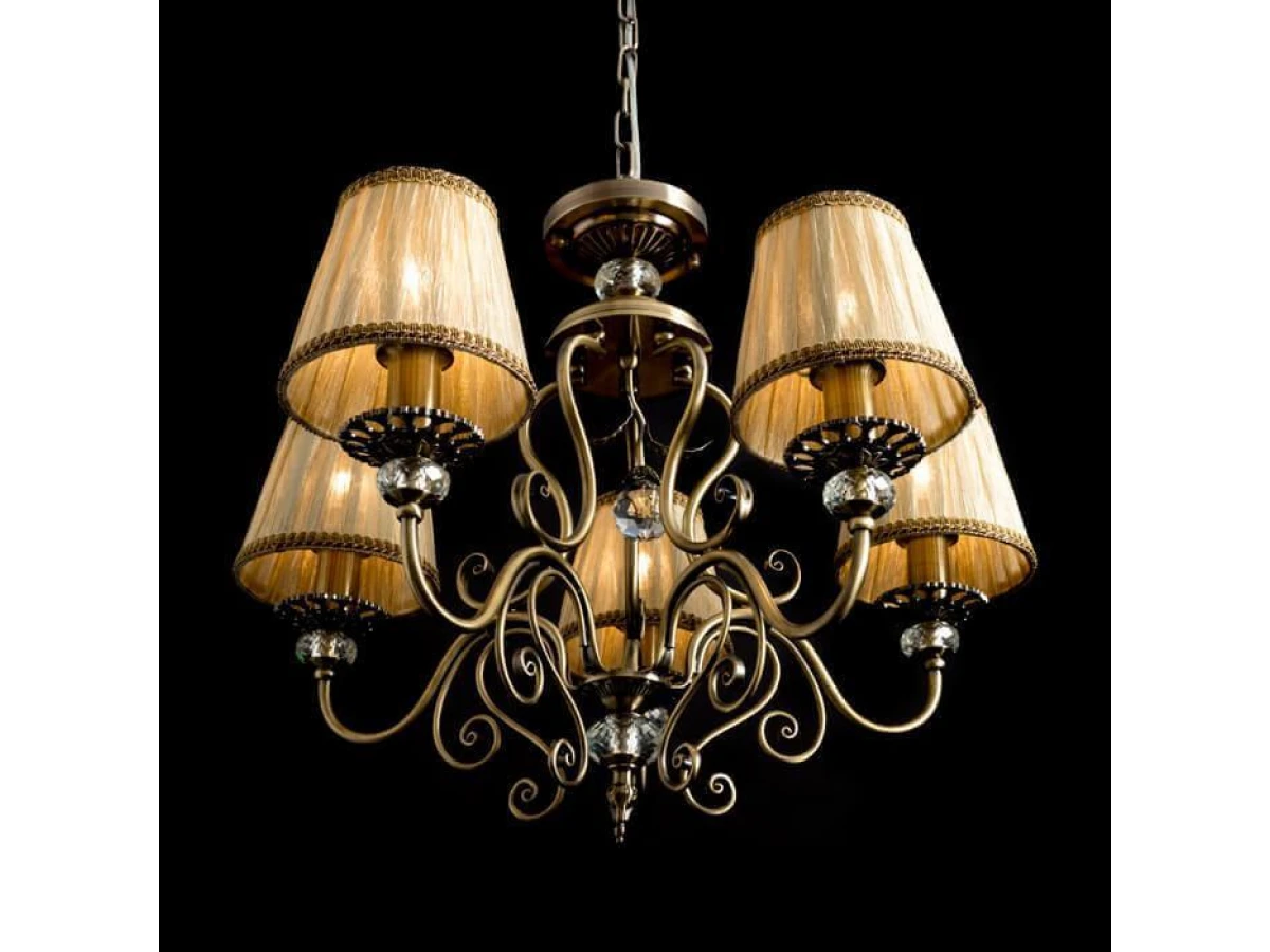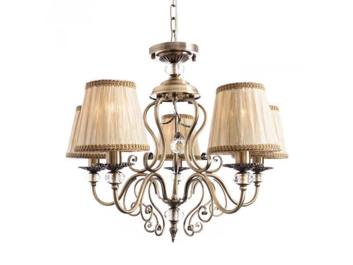 Феноменальная модель A2083LM-5AB от итальянской компании Arte Lamp относится к коллекции Charm и отлично подойдет для установки на потолок спальни, оформленной в классическом стиле. Подвесная люстра Arte Lamp Charm A2083LM-5AB с конусными плафонами осветит помещение площадью 16.7 кв. м. Производитель Arte Lamp рекомендует использовать для устройства лампы накаливания с цоколем E14 и мощностью 60 W. Прибор произведен с использованием материалов: текстиль, металл и ткань и может использоваться для натяжного потолка. Основным цветом товара является бежевый и бронзовый. Торопитесь сделать заказ в интернет-магазине ВоронежСвет.