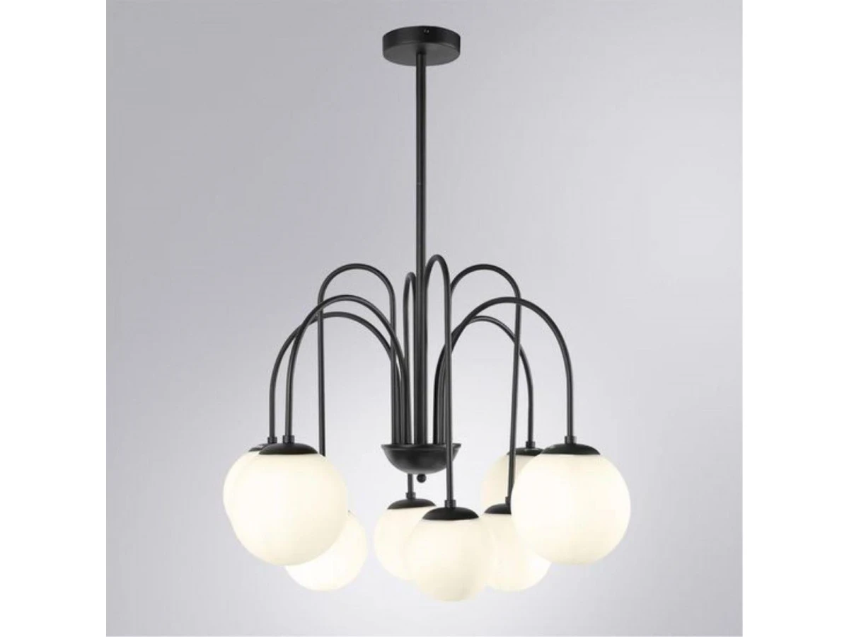 Выдающаяся модель A1675LM-8BK от компании Arte Lamp относится к коллекции Mebsuta и отлично подойдет для установки на потолок спальни, оформленной в стиле модерн. Подвесная люстра Arte Lamp Mebsuta A1675LM-8BK с плафонами в виде шаров осветит помещение площадью 15 кв. м. Производитель Arte Lamp рекомендует использовать для устройства лампы накаливания с цоколем E14 и мощностью 40 W. Прибор произведен с использованием материалов: стекло и металл и может использоваться для натяжного потолка. Основным цветом товара является белый и черный. Подвесная люстра A1675LM-8BK продается по цене 14390 руб. Торопитесь сделать заказ в интернет-магазине ВоронежСвет.