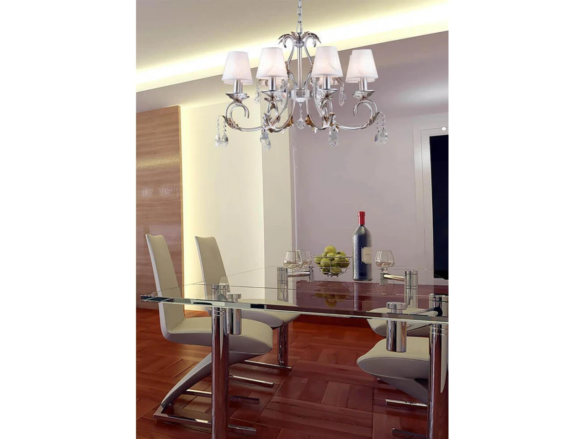 Особенная модель Imola E 1.1.8 S от итальянской компании Arti Lampadari относится к коллекции Imola и отлично подойдет для установки на потолок в гостиной, оформленной в стиле модерн. Подвесная люстра Arti Lampadari Imola E 1.1.8 S с конусными плафонами осветит помещение площадью 17.8 кв. м. Производитель Arti Lampadari рекомендует использовать для устройства лампы накаливания с цоколем E14 и мощностью 40 W. Прибор произведен с использованием материалов: текстиль, металл и ткань и может использоваться для натяжного потолка. Основным цветом товара является белый и серебряный. Торопитесь сделать заказ в интернет-магазине ВоронежСвет.