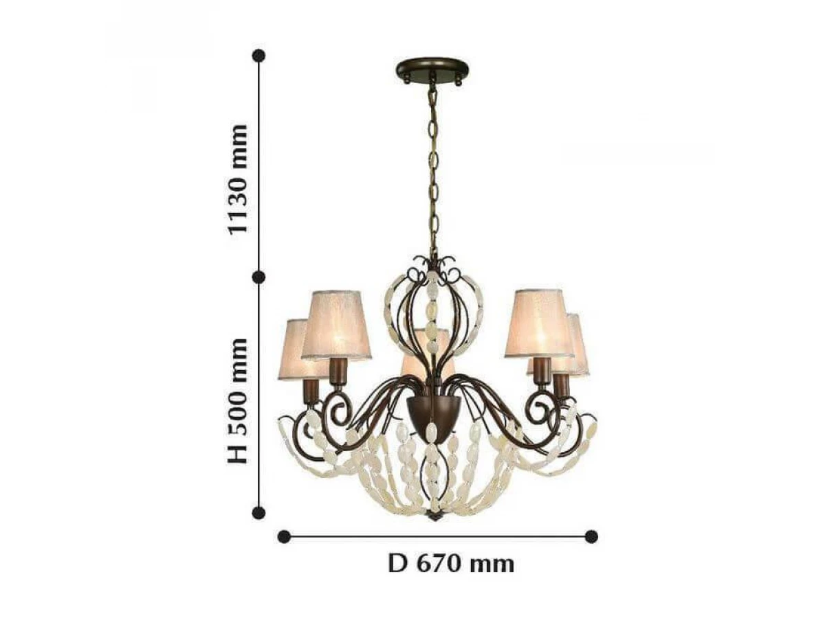 Уникальная модель 2305-5P от немецкой компании Favourite относится к коллекции Lily и отлично подойдет для установки на потолок спальни, оформленной в стиле кантри. Подвесная люстра Favourite Lily 2305-5P с конусными плафонами осветит помещение площадью 13.3 кв. м. Производитель Favourite рекомендует использовать для устройства лампы накаливания с цоколем E14 и мощностью 40 W. Прибор произведен с использованием материалов: текстиль, металл и ткань и может использоваться для натяжного потолка. Основным цветом товара является кремовый и коричневый. Торопитесь сделать заказ в интернет-магазине ВоронежСвет.