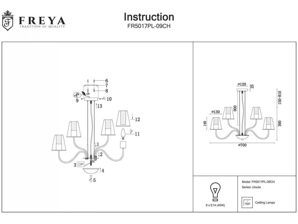Подвесная люстра Freya Ursula FR5017PL-09CH