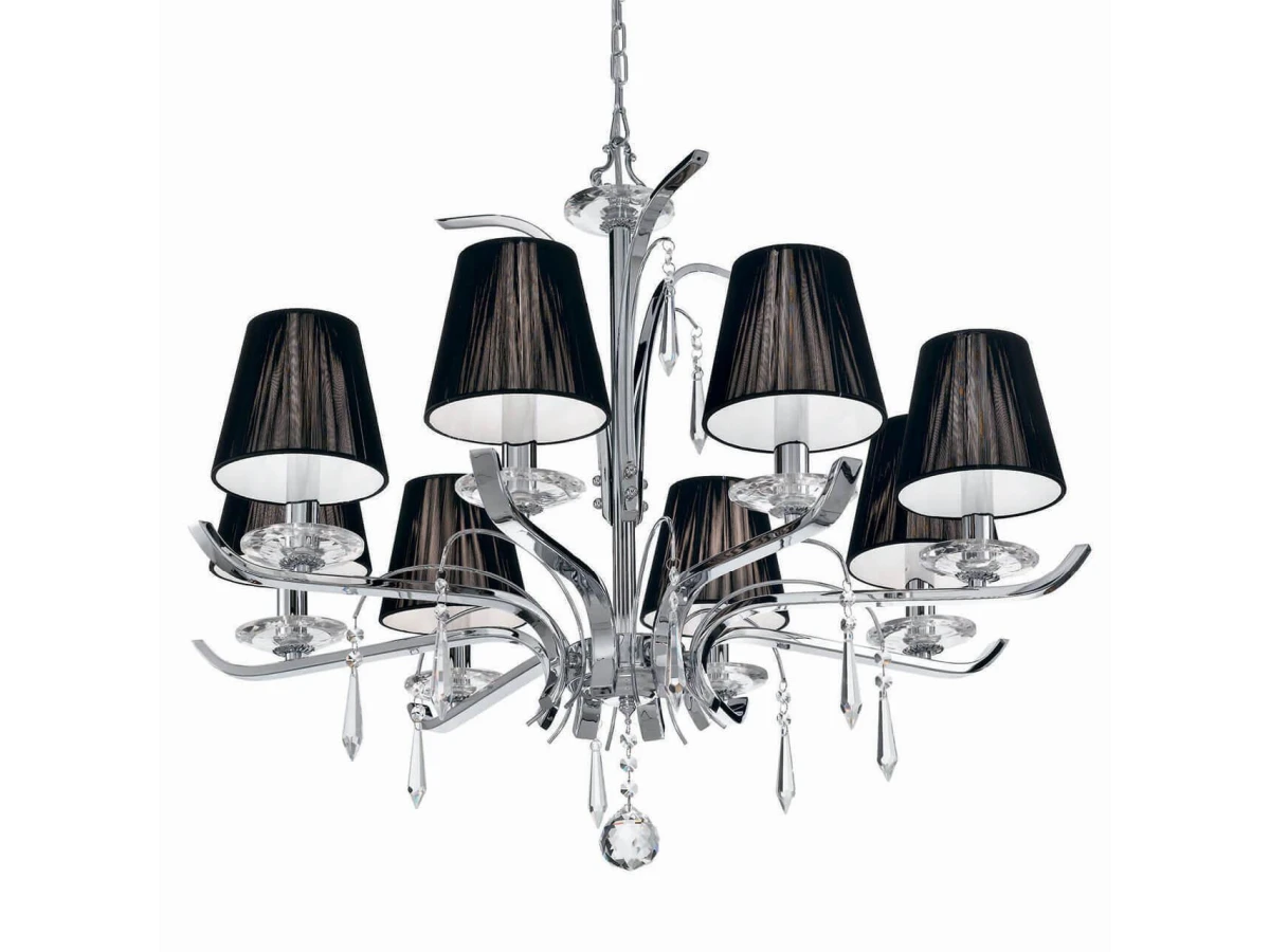 Восхитительная модель Accademy SP8 от итальянской компании Ideal Lux относится к коллекции Accademy и отлично подойдет для установки на потолок в гостиной, оформленной в стиле арт-деко. Подвесная люстра Ideal Lux Accademy SP8 с конусными плафонами осветит помещение площадью 17.8 кв. м. Производитель Ideal Lux рекомендует использовать для устройства лампы накаливания с цоколем E14 и мощностью 40 W. Прибор произведен с использованием материалов: текстиль, металл и ткань и может использоваться для натяжного потолка. Основным цветом товара является черный и хромовый. Торопитесь сделать заказ в интернет-магазине ВоронежСвет.