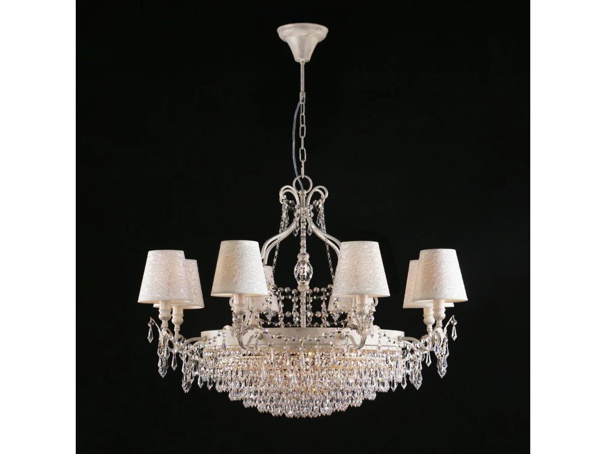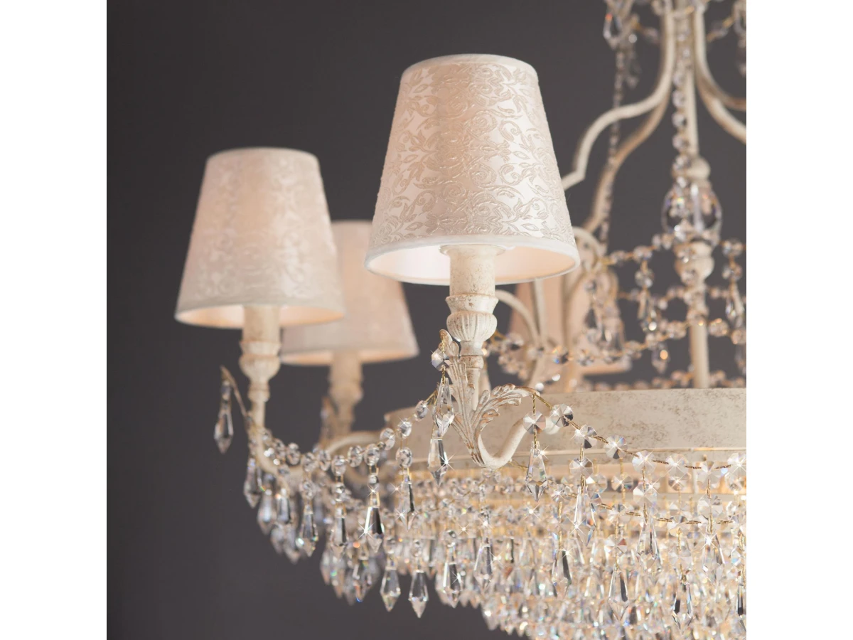 Подвесная люстра с абажурами и хрусталем 305/15 Strotskis предназначена для создания основного освещения в современных и классических интерьерах, подходит для различных типов помещений: гостиная, спальня и рассчитана на площадь освещения 38 м². Классическая люстра оснащена патронами с цоколем Е14 и G9 , которые рассчитаны на максимальную мощность ламп 40 Вт. Люстра украшена эффектным декором из хрусталя и дополнена выразительными тканевыми абажурами. Арматура изготовлена из высококачественного металла с надежным защитным покрытием. В нашем интернет-магазине вы можете купить подвесную люстру по выгодной цене.