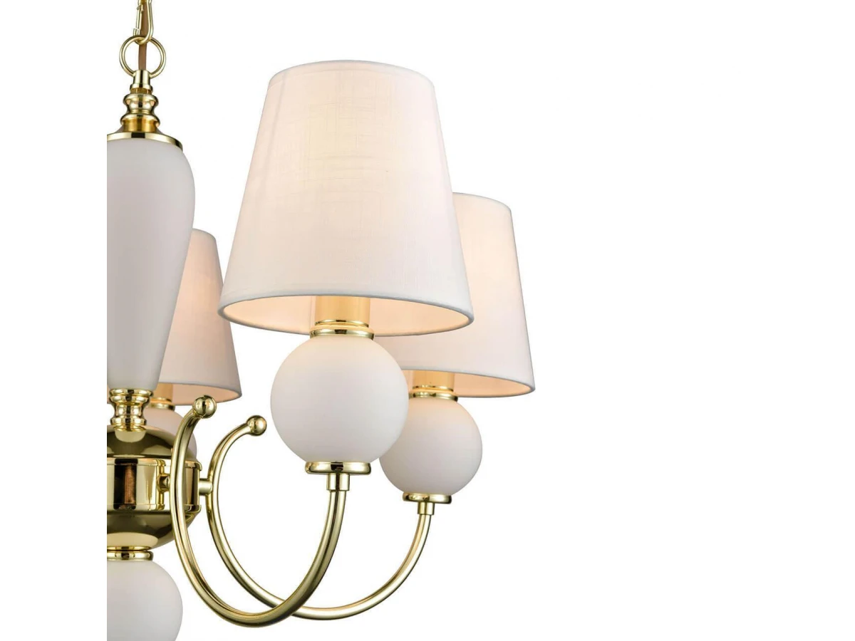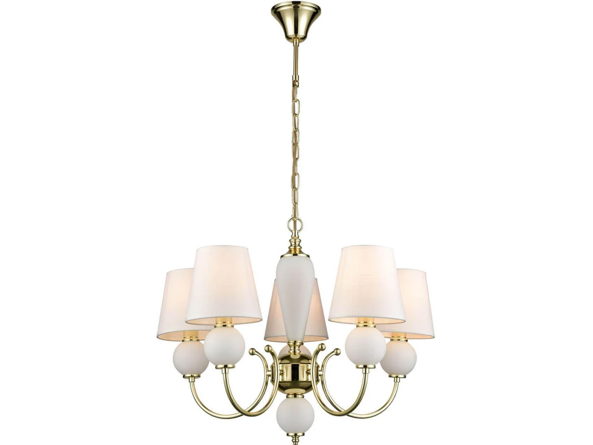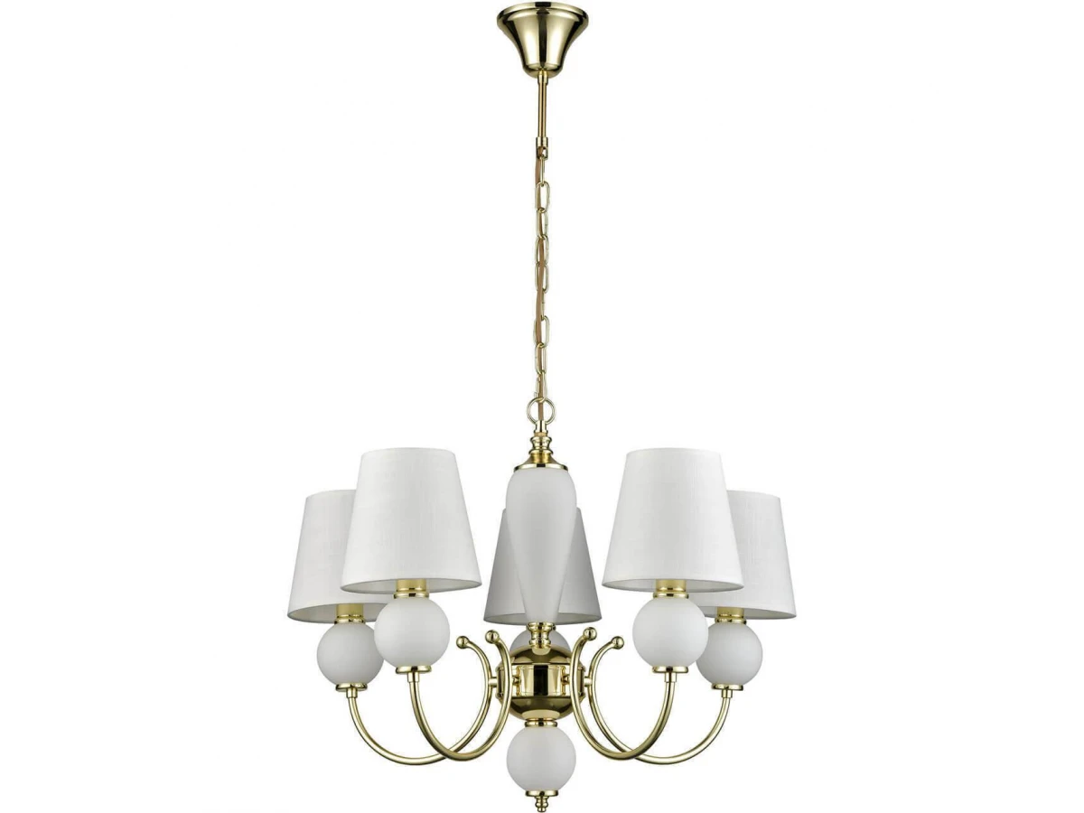 Изысканная модель VL2014L05 от итальянской компании Vele Luce относится к коллекции Bella и отлично подойдет для установки на потолок спальни, оформленной в стиле неоклассика. Подвесная люстра Vele Luce Bella VL2014L05 с конусными плафонами осветит помещение площадью 13.3 кв. м. Производитель Vele Luce рекомендует использовать для устройства лампы накаливания с цоколем E14 и мощностью 40 W. Прибор произведен с использованием материалов: текстиль, металл и ткань и может использоваться для натяжного потолка. Основным цветом товара является белый и золотой. Торопитесь сделать заказ в интернет-магазине ВоронежСвет.