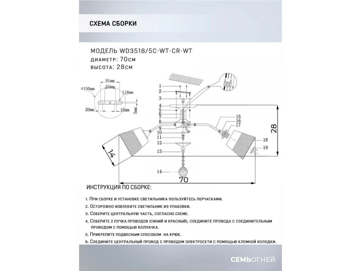 Стильная модель WD3518/5C-WT-CR-WT от российской компании Seven Fires относится к коллекции Donetella и отлично подойдет для установки на низкий потолок кухни, оформленной в стиле модерн. Потолочная люстра Seven Fires Donetella WD3518/5C-WT-CR-WT с плафонами-конусами осветит помещение площадью 15 кв. м. Производитель Seven Fires рекомендует использовать для устройства лампы накаливания с цоколем E27 и мощностью 60 W. Прибор произведен с использованием материала: металл и может использоваться для натяжного потолка. Основным цветом товара является белый. Торопитесь сделать заказ в интернет-магазине ВоронежСвет.